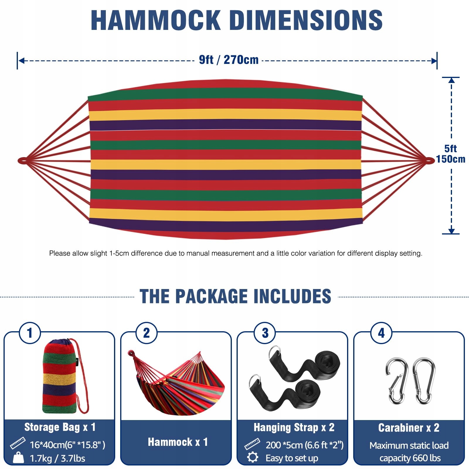 ANYOO Hamak Bawełniany Outdoor Z Paskami Do Ogrodu i Kampingu | Premium Supply