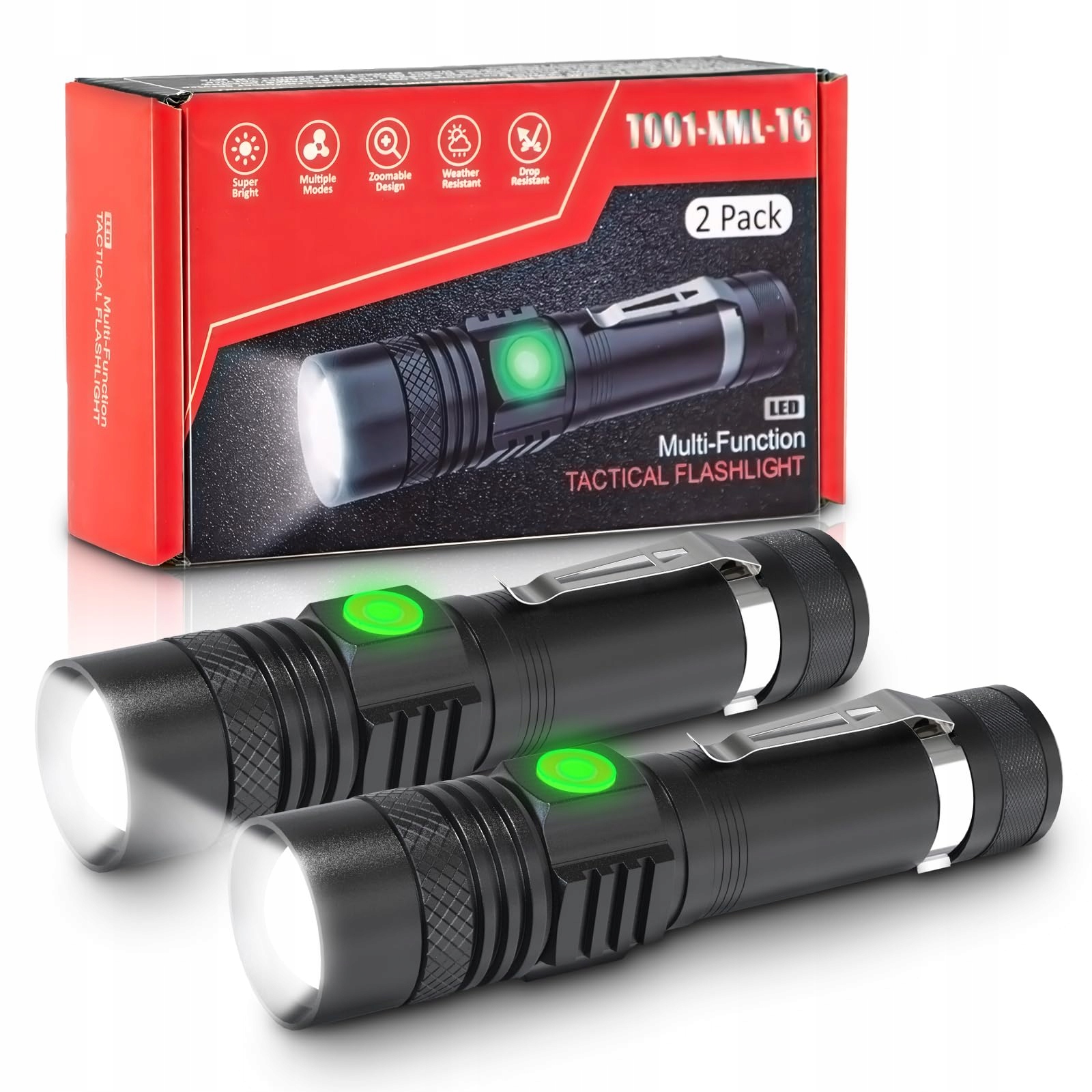 AOMEES Mini latarka LED, ładowalna latarka USB 3000 lumenów, super jasna latarka z zoomem IPX5 wodoodporna z 4 trybami, kompaktowa do campingu, wędrówek, awarii, 2 sztuki (AOMEES-DE-USBFL-03)
