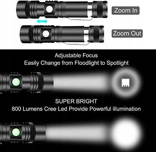 Wysokiej jakości latarki LED: Kompaktowa mini latarka LED oferuje niesamowity strumień światła. Z większym obszarem oświetlenia niż inne latarki o tym samym rozmiarze, latarka bez problemu oświetli cały ogród. Oddalanie, aby uzyskać reflektor. Silny strumień może wtedy sięgać nawet do 200 metrów.