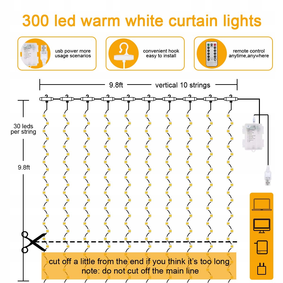 ✅[Bezpieczna i Wygodna]Część przewodowa kurtyny świetlnej jest całkowicie uszczelniona, dzięki czemu może być zanurzona, ale USB nie jest wodoodporne, więc trzymaj je z dala od wody. Przy niskim napięciu 5 V, nawet po długim użytkowaniu, nie przegrzeje się, nie poparzy rąk, nie spowoduje porażenia prądem ani zagrożenia pożarowego.