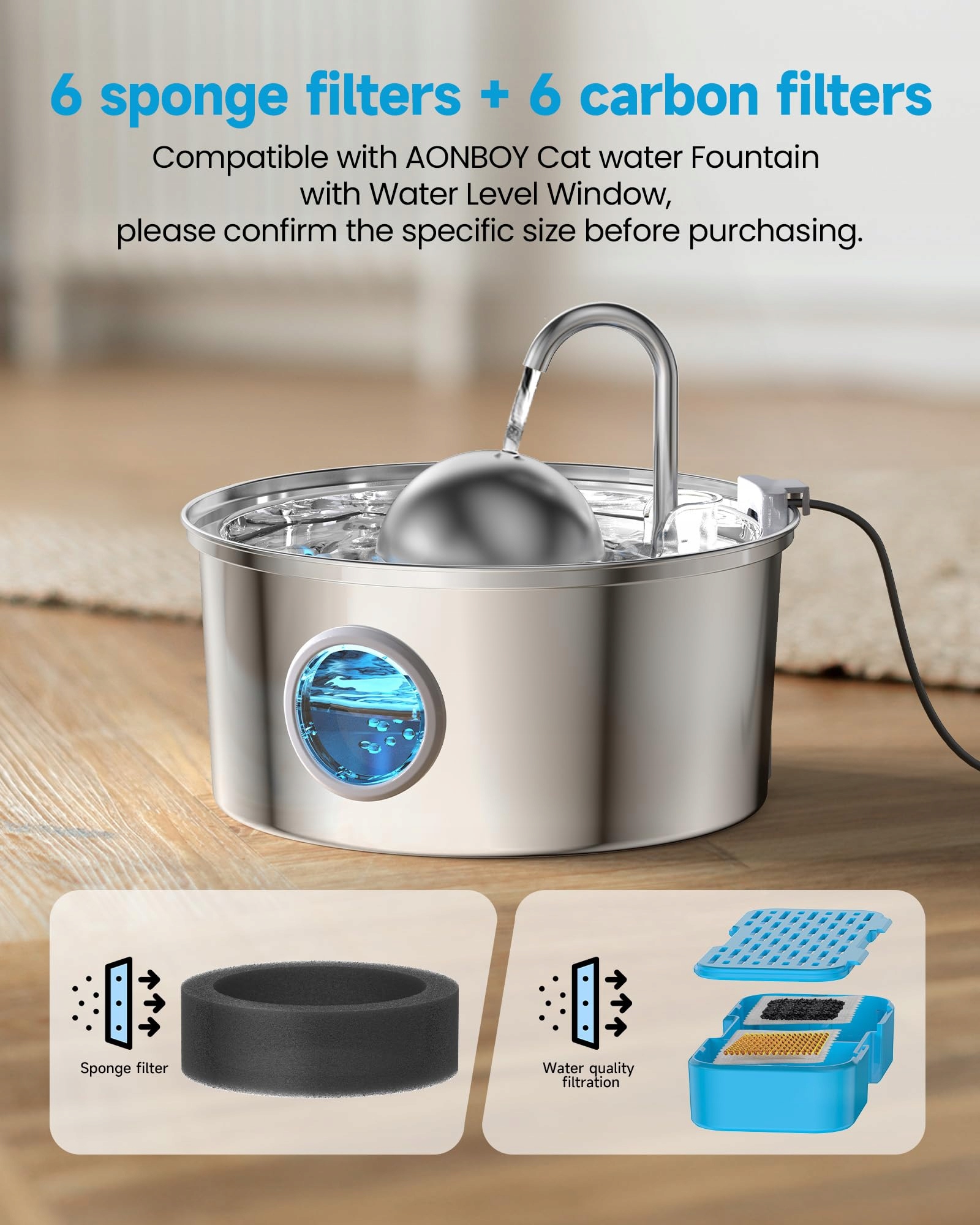 AONBOY Filtry Do Fontanny Dla Kota 6 Filtrów 6 Filtrów Piankowych S3-SC