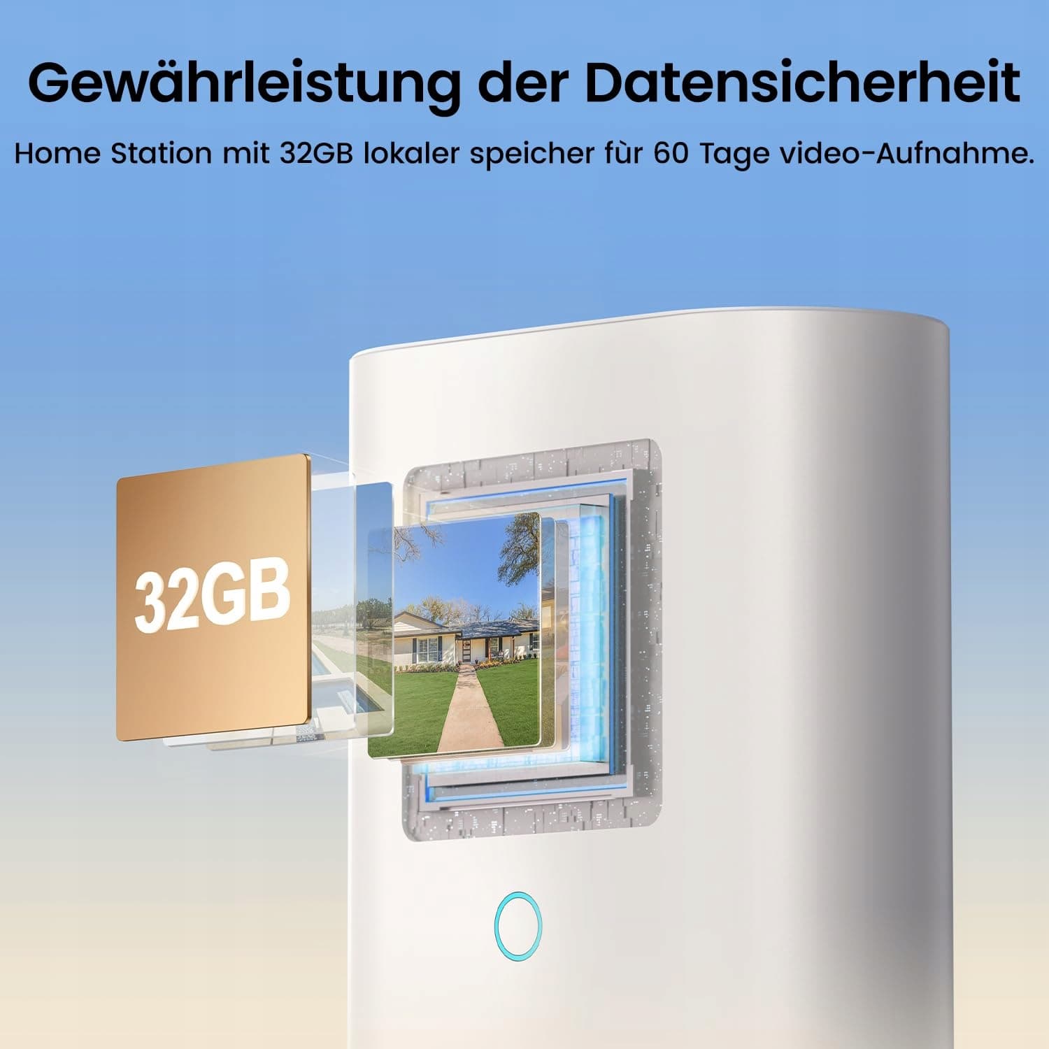【0 opłat i 100% prywatności】Stacja domowa łączy dwie kamery monitoringu zewnętrznego na baterię solarną i oferuje 32GB lokalnej pamięci na nagrania monitoringu do 6 miesięcy w pętli. Dzięki stacji domowej zaszyfrowany sygnał do kamery solarnej monitoringu zewnętrznego jest stały i ciągły, zapewniając płynny podgląd na żywo, aosu 2k kamera monitoringu zewnętrznego solarna ze stacją domową, wszystkie dane są przechowywane z użyciem zaawansowanego szyfrowania na poziomie wojskowym.