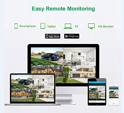 【P2P i Android / IOS dla APLIKACJI】: darmowa aplikacja do wyświetlania i odtwarzania na żywo na urządzeniach inteligentnych. Dzięki temu bezprzewodowemu systemowi kamer CCTV możesz uzyskać zdalny dostęp za pomocą Wi-Fi / 4G na smartfonach, tabletach i komputerach w dowolnym miejscu i czasie jednocześnie. Zeskanuj kod QR lub pobierz IP-Pro na swój telefon (darmowa aplikacja), bardzo prosta konfiguracja w kilka sekund.