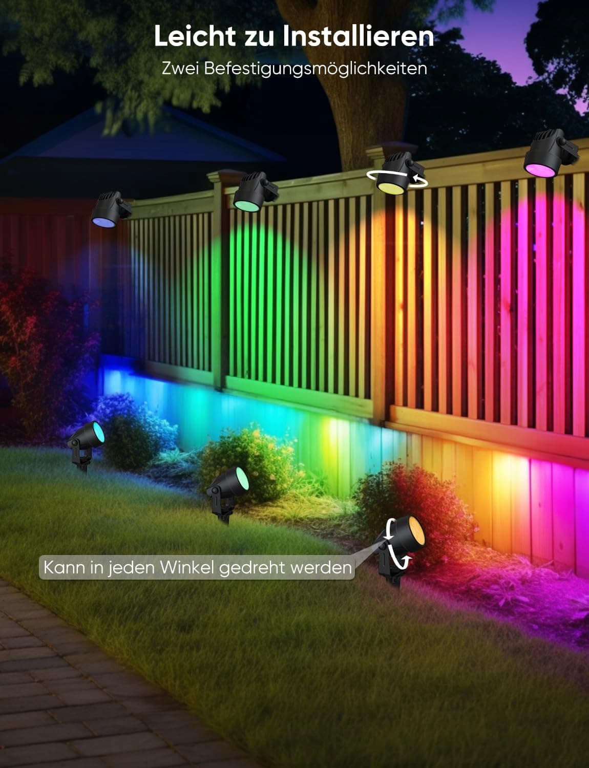 Reflektory ogrodowe APPECK: Dzięki zaawansowanej technologii RGBW+IC możesz indywidualnie dostosować kolor każdego pojedynczego oświetlenia ścieżki i wybierać spośród imponującej liczby 16 milionów kombinacji kolorów. Ciesz się niezrównanym doświadczeniem świetlnym, które ożywi Twoje otoczenie (nie można łączyć wielu zestawów)