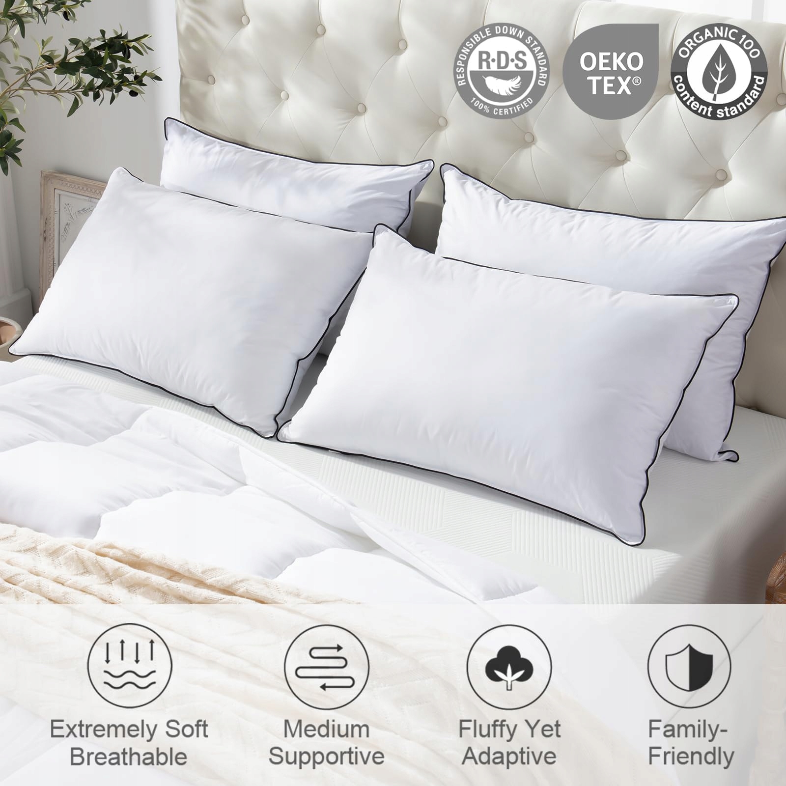 𝐓𝐨 𝐣𝐞𝐬𝐭 𝐨𝐫𝐠𝐚𝐧𝐢𝐜𝐳𝐧𝐚 𝐟𝐫𝐞𝐬𝐡: Ta poduszka puchowa jest owinięta w 600 TC perkalu z ekskluzywnej bawełny organicznej, która jest certyfikowana przez OCS i OEKO za swoją oddychalność i bezpieczeństwo. Idealna dla osób z wrażliwą skórą, ponieważ utrzymuje Cię chłodnym i świeżym przez całą noc. Ciesz się komfortowym i relaksującym snem z naszą poduszką hotelową, bez uderzeń lub zapachów piór
