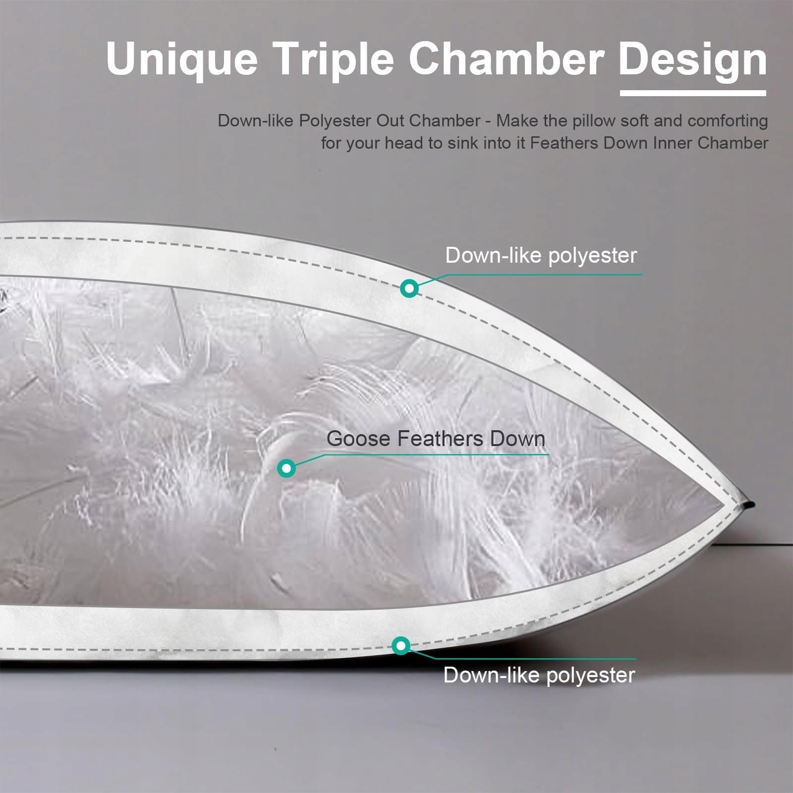 𝐓𝐫𝐞𝐜𝐢𝐚𝐦𝐞𝐫𝐝𝐞𝐬𝐢𝐠𝐧: Wypełniliśmy te puszyste poduszki piórami certyfikowanymi przez RDS oraz luksusowym poliestrem przypominającym puch, który jest wspaniale miękki i wygodny, gdy Twoja głowa w nim zanurza się. Poczujesz wsparcie wewnętrznej komory z piór, która oferuje delikatny opór, aby Twoja głowa nie zapadała się zbyt głęboko w poduszkę, a Twoja szyja była doskonale podtrzymywana podczas snu
