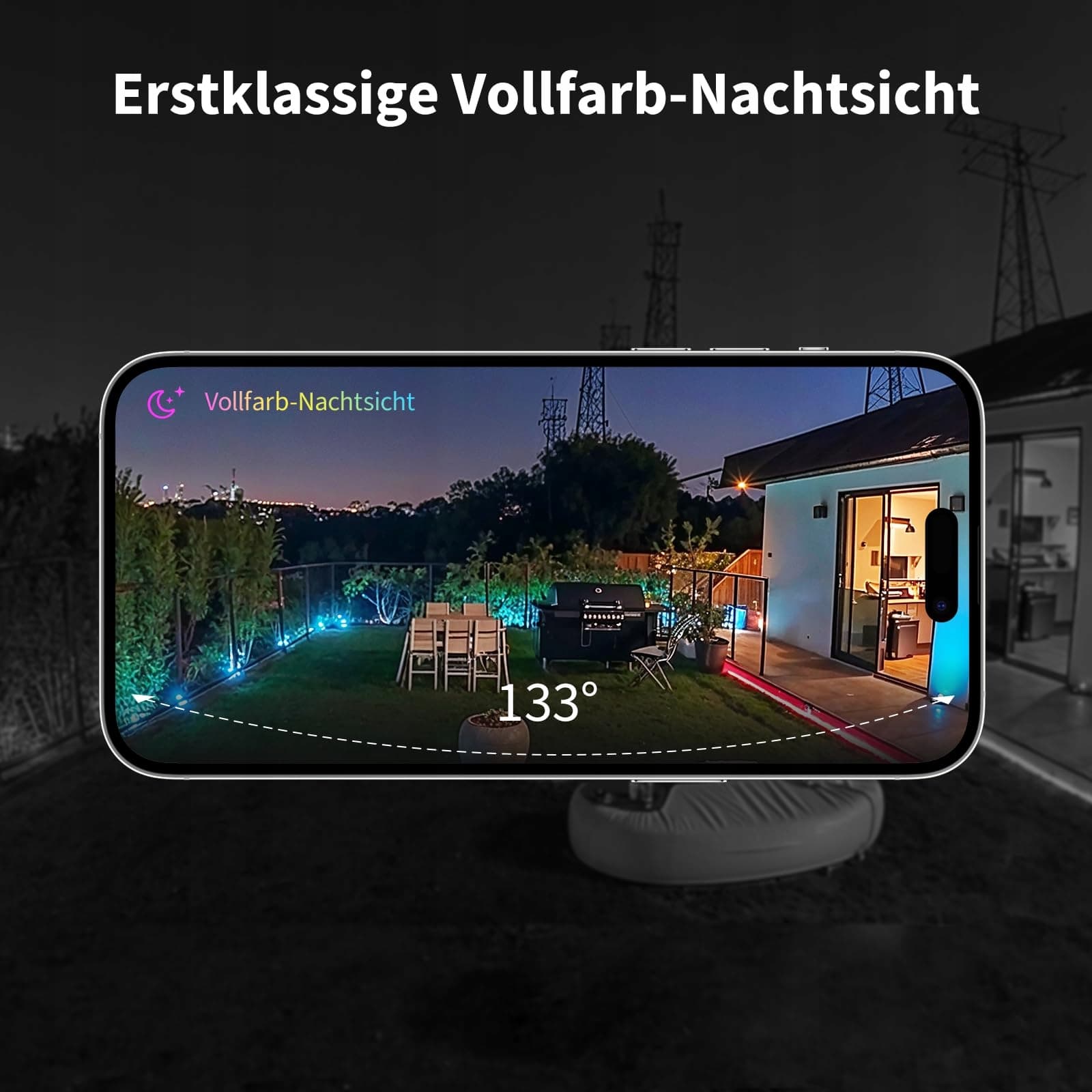 4MP HD i nocne widzenie w kolorze rzeczywistym: Kamera monitorująca na zewnątrz G5 Pro oferuje rozdzielczość 4MP z polem widzenia 133° i obsługuje nocne widzenie w kolorze rzeczywistym z sensorem 1/1,8'' i przysłoną f/1.0, aby wykrywać włamywaczy przy słabym oświetleniu. Dimmowalny reflektor 3000K służy do odstraszania włamywaczy i poprawia widoczność w nocy. Uwaga: kamera zewnętrzna bezprzewodowa nie jest wyposażona w światło IR.