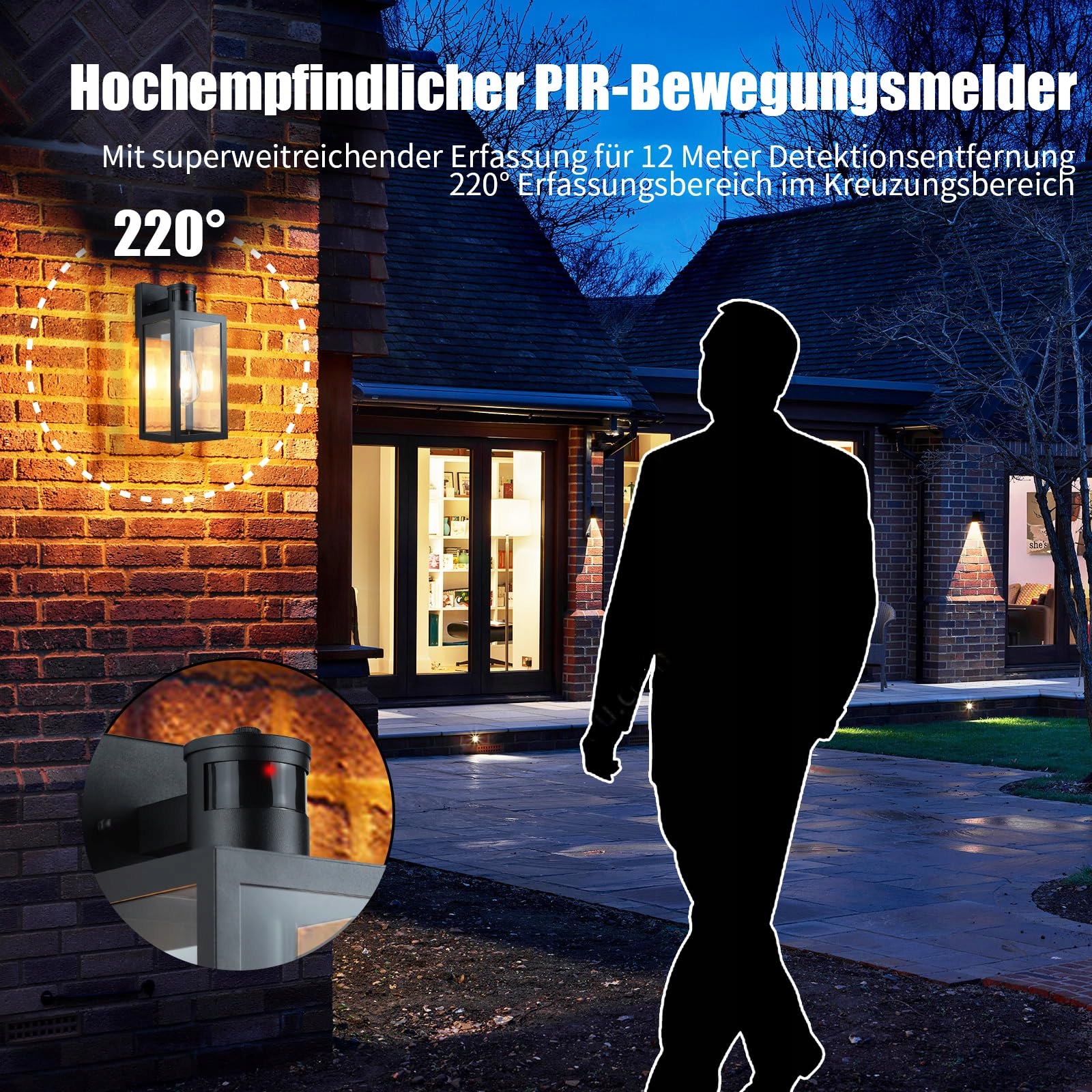 ARANZYEC Lampa Zewnętrzna z Czujnikiem Ruchu 3 Tryby E27 Wodoodporna