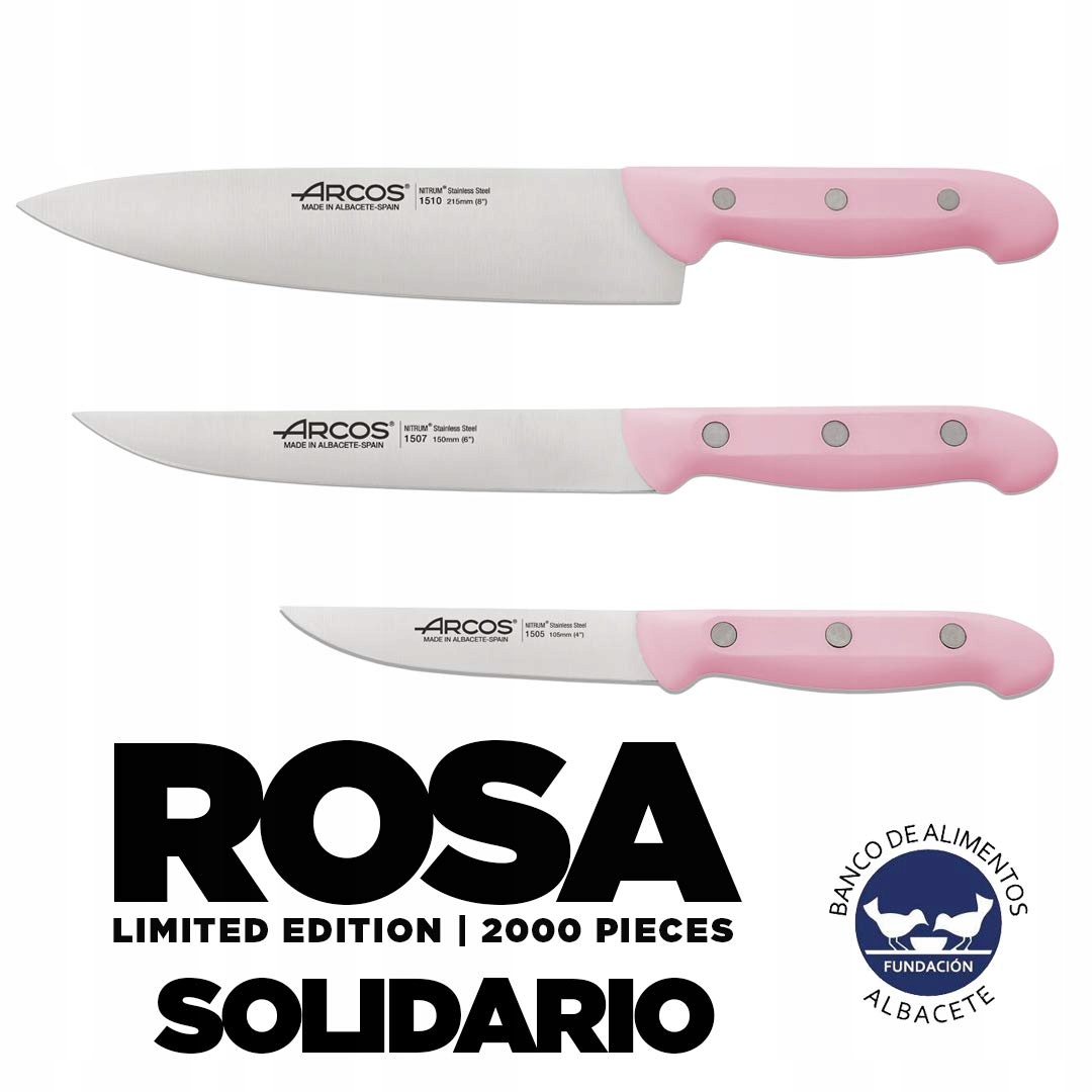 Zestaw noży kuchennych Arcos, Różowy, 3-częściowy, nóż kuchenny, nóż do warzyw, nóż obierak, zestaw noży kuchennych, Różowy, edycja limitowana, Solidaria