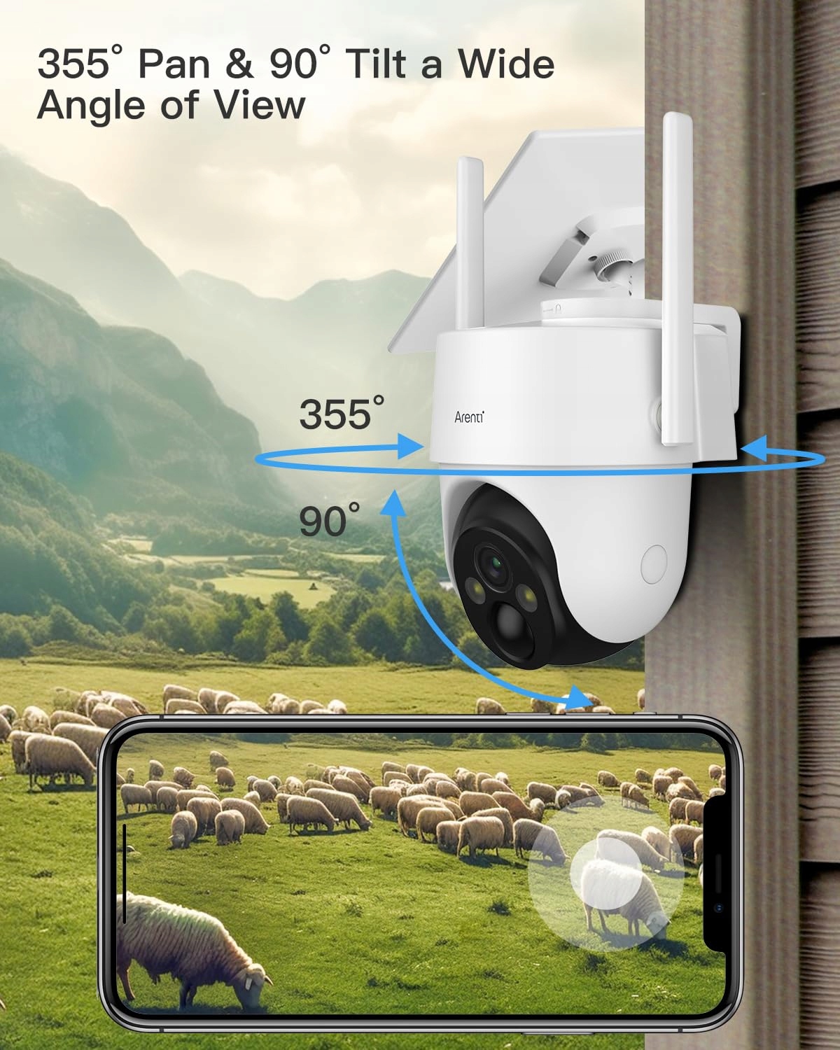 ARENTI Kamera Zewnętrzna 4G LTE Solar 2K PTZ 355° Noc PIR Audio | Premium Supply
