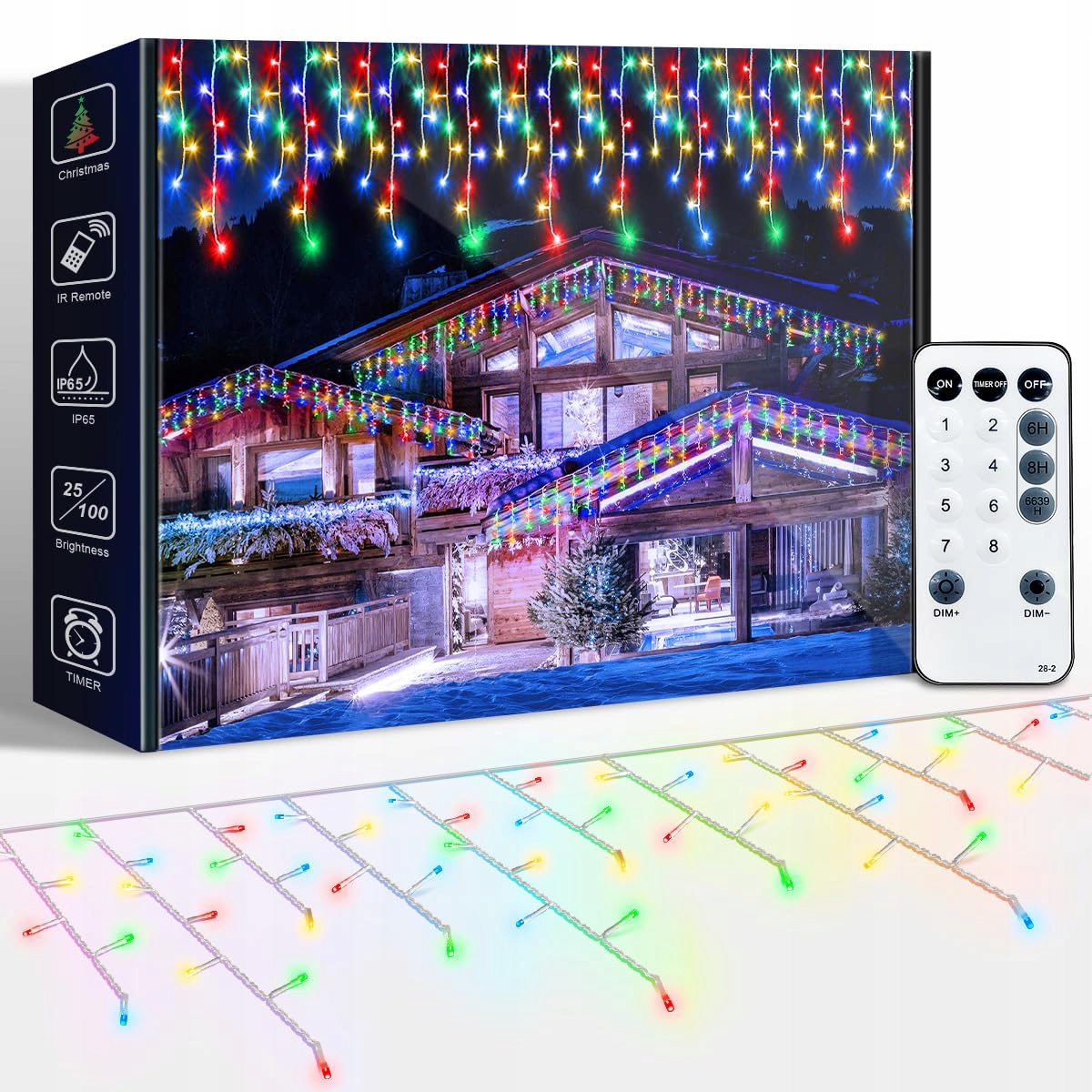 ARKOCHIC 10M Girlanda świetlna Lodowy deszcz na zewnątrz, LED kurtyna świetlna z pilotem, wodoodporna IP65 8 trybów do użytku wewnętrznego i zewnętrznego na Boże Narodzenie, sypialnię, imprezę, wesele, balkon, ogród dekoracja (Kolorowa)