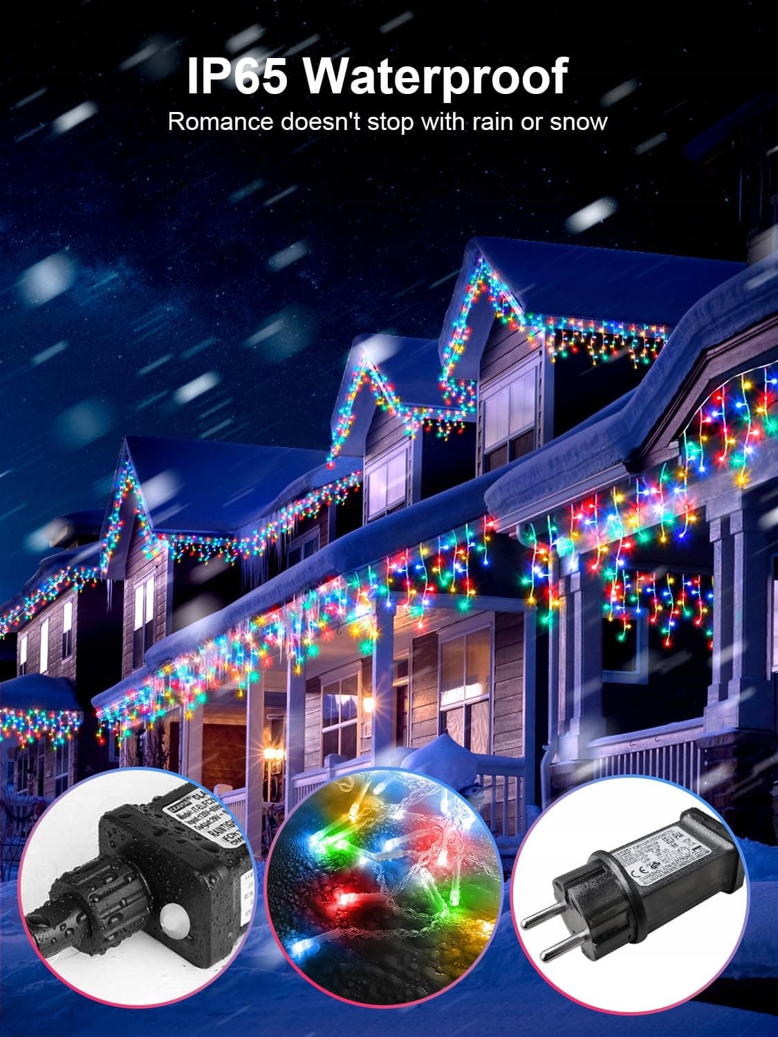 【WODOODPORNOŚĆ IP65】Girlanda ARKOCHIC do użytku zewnętrznego posiada zaawansowaną technologię wodoodporną, która zapewnia działanie nawet w bardzo zimnych i mroźnych warunkach. 【Uwaga: stopień ochrony wodnej wtyczki to IP45】