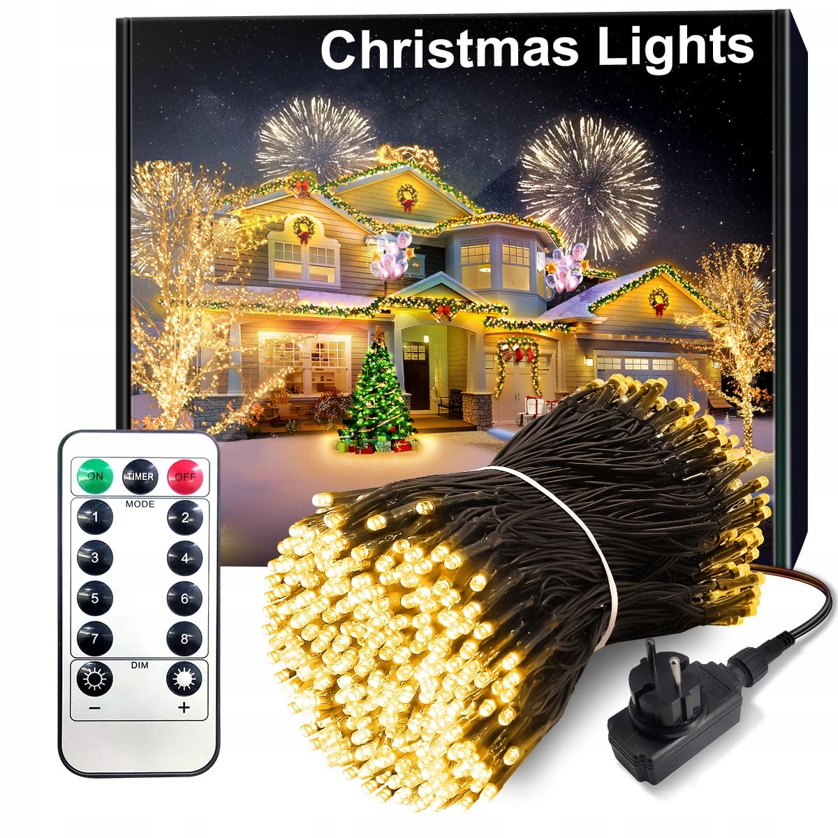 ARKOCHIC 100M łańcuch świetlny na zewnątrz, 1000 ciepłobiałych LED łańcuchów świetlnych na choinkę na zewnątrz i wewnątrz z pilotem, timerem, 8 trybami wodoodpornego oświetlenia świątecznego na zewnątrz do ogrodu, balkonu, wesela Icicle