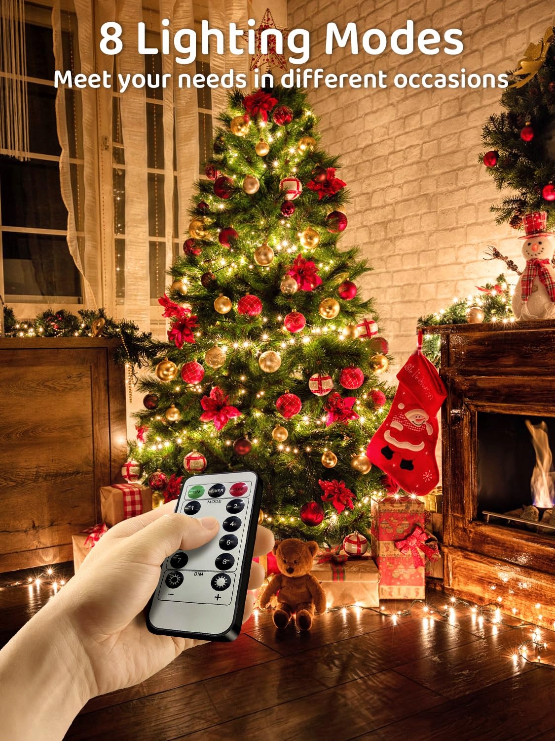 [Timer i funkcja pamięci] łańcuch świetlny na Boże Narodzenie ma ustawienie timera: 6 godzin. Światło jest włączone przez 6 godzin, gdy naciśniesz przycisk 6h, a następnie wyłączone na 18 godzin. łańcuch świetlny na zewnątrz na Boże Narodzenie zapamiętuje ostatni ustawiony tryb, nie musisz go ustawiać za każdym razem od nowa.