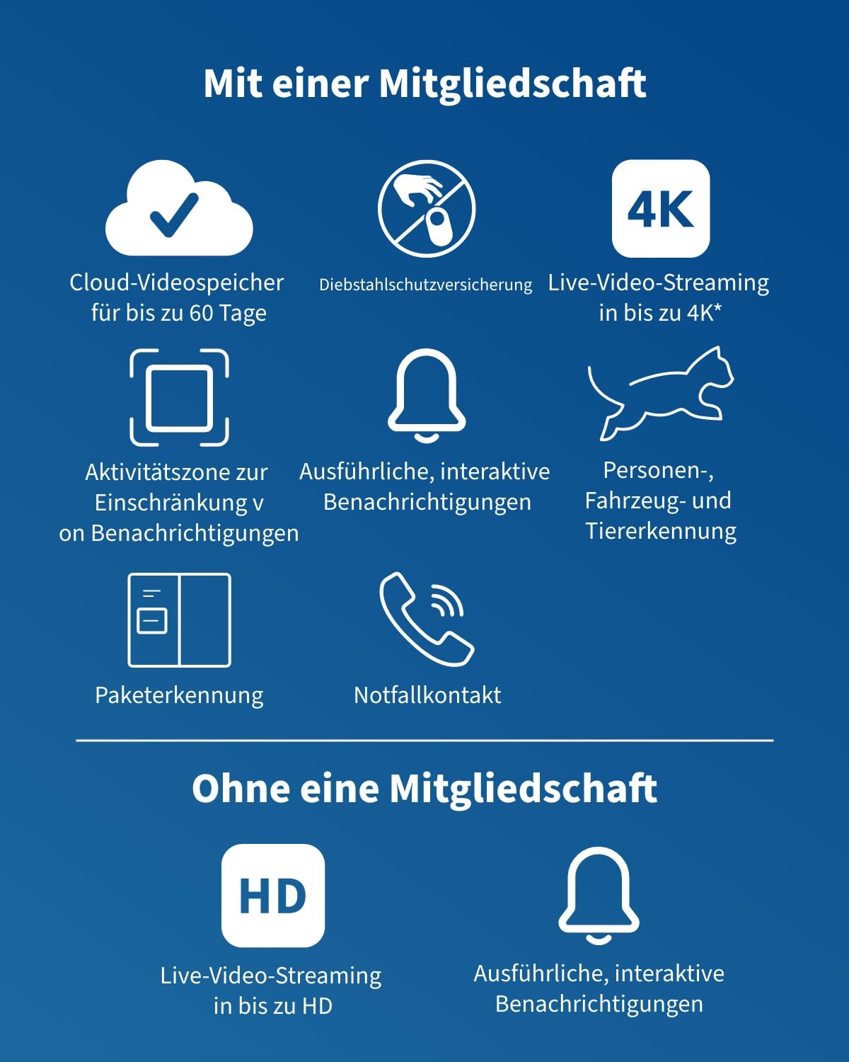SUBSKRYPCJA ARLO SECURE: Otrzymuj powiadomienia oparte na sztucznej inteligencji przy wykryciu ruchu (osoby, paczki, zwierzęta), indywidualne strefy aktywności, przechowywanie w chmurze oraz ochronę przed kradzieżą kamer – możliwość rezygnacji w dowolnym momencie