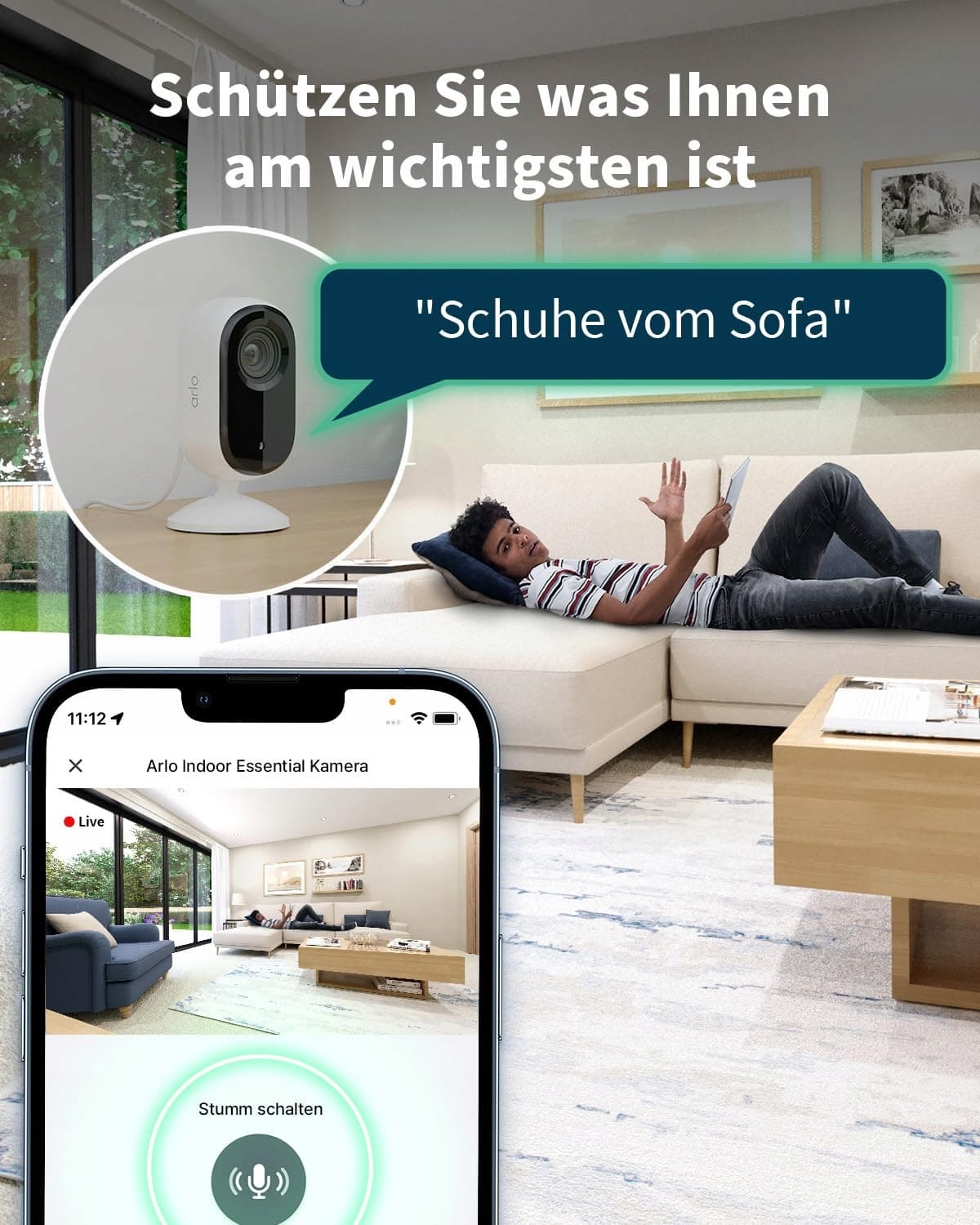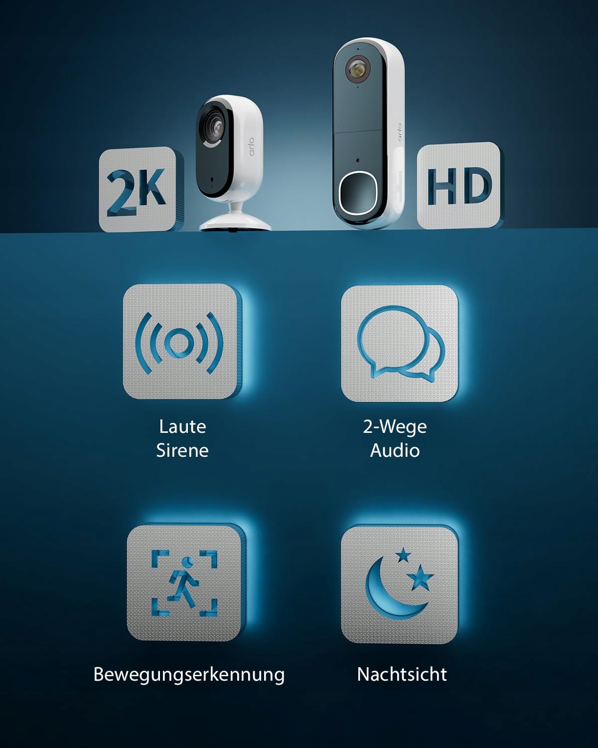 Arlo Bezprzewodowy wideodomofon HD i kamera monitoringu 2K do użytku wewnętrznego – inteligentna ochrona domu dla rodziny i zwierząt domowych, tryb nocny, wykrywanie ruchu, dwukierunkowe audio, kompatybilny z Alexą