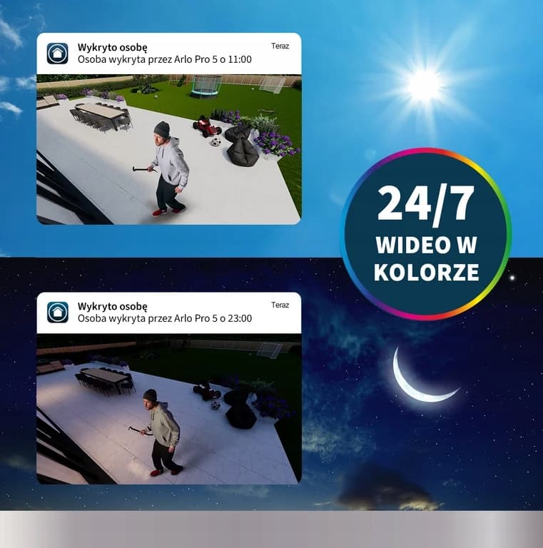 Ulepszona wizja nocna w kolorze - oznacza, że ubrania i cechy charakterystyczne są lepiej rozpoznawalne, co może być kluczowe jako dowody