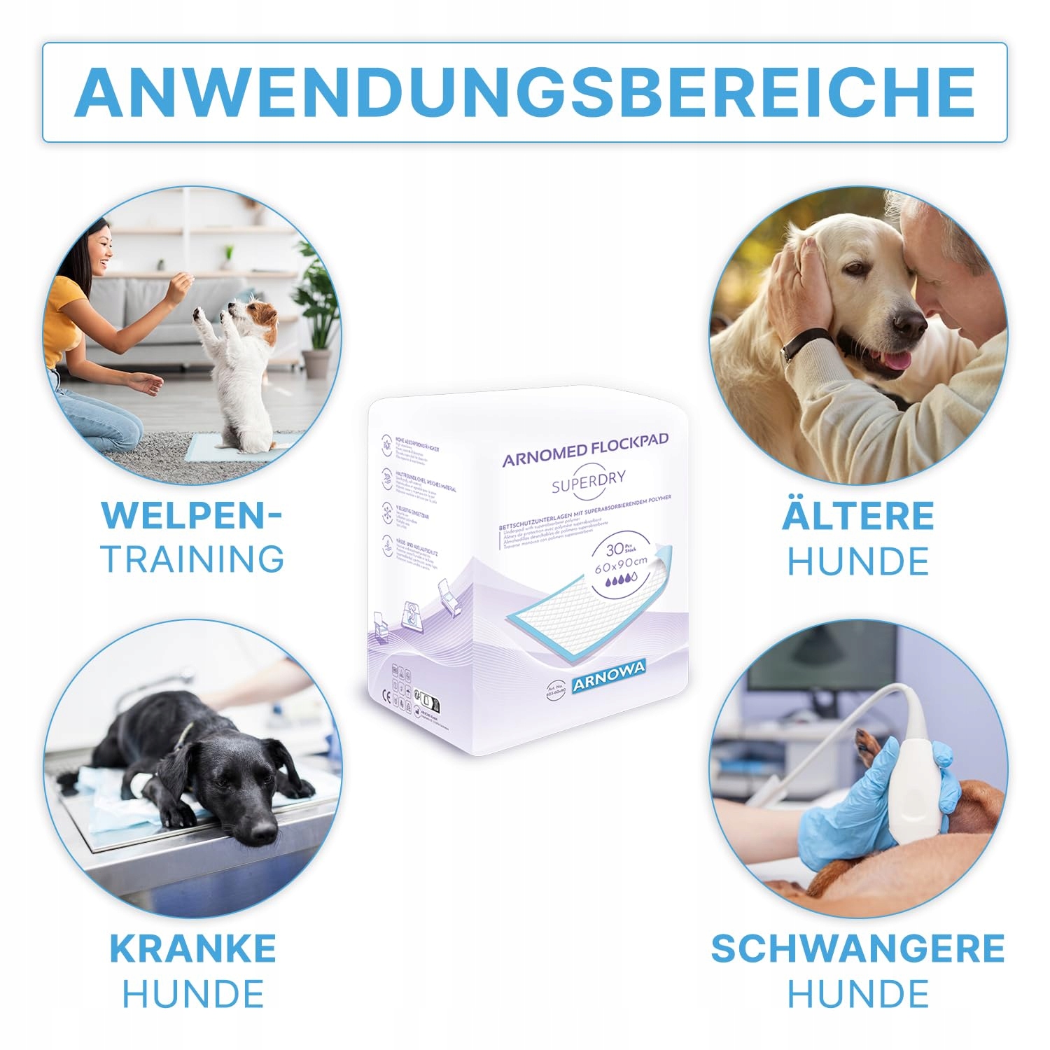 AKCESORIA DLA SZCZENIĄT ✓ Podkłady dla szczeniąt ARNOMED pomagają w nauce czystości Twojego psa. Z 30 sztukami w opakowaniu masz wystarczający zapas na co najmniej miesiąc. Praktyczne opakowanie nadaje się do użytku w domu i w podróży.