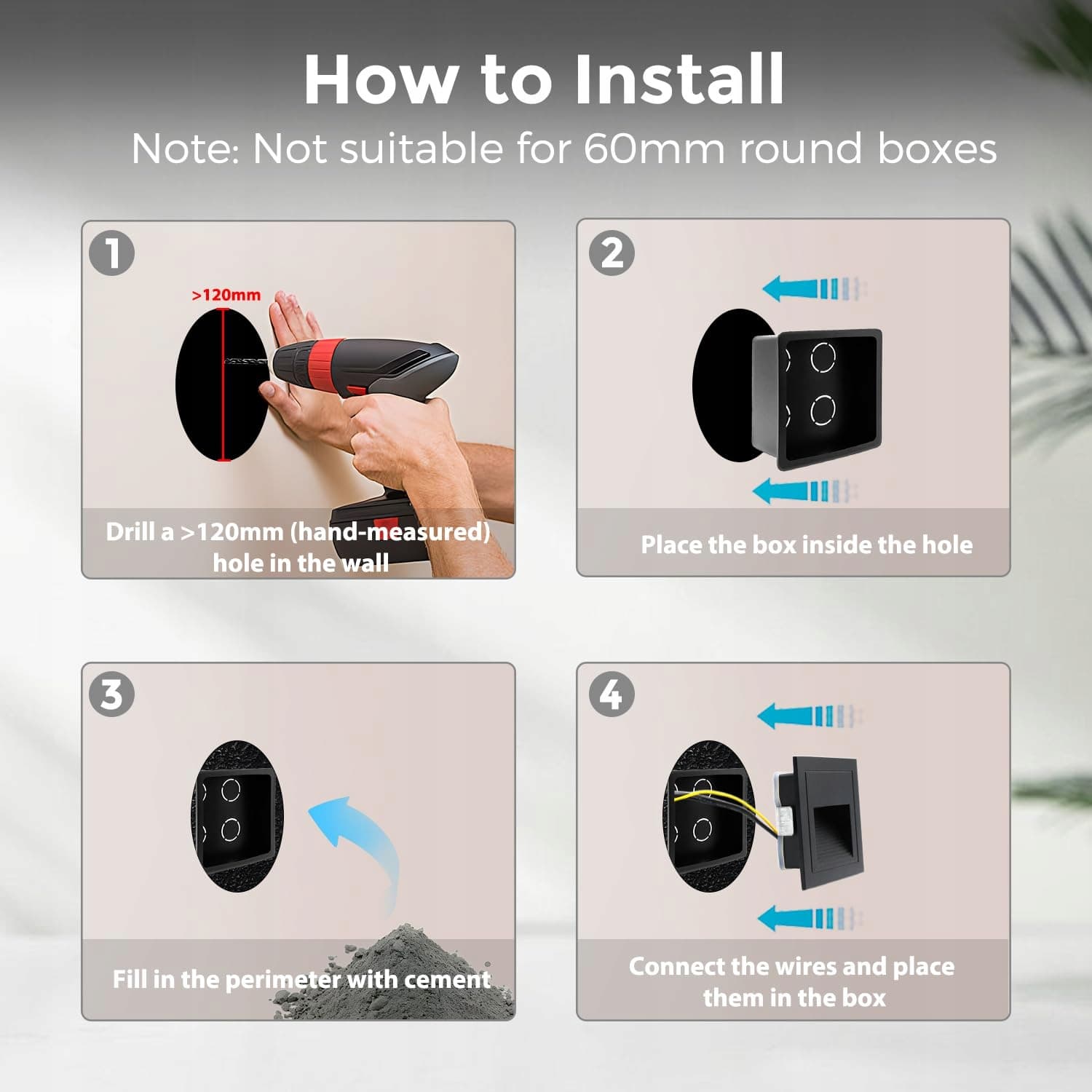 💡【Zawartość】4 x czarne LED oświetlenie schodów, 4 x puszki podtynkowe (🌹dostawa losowa w kolorze czarnym/białym. Kolor nie wpływa na efekt instalacji).