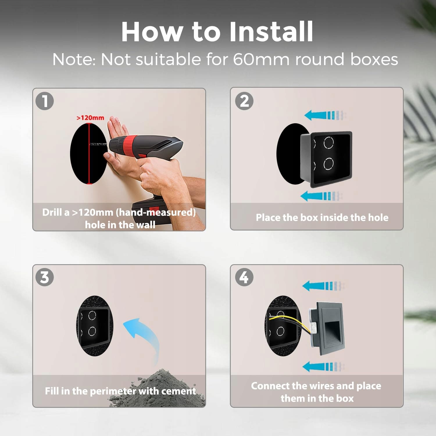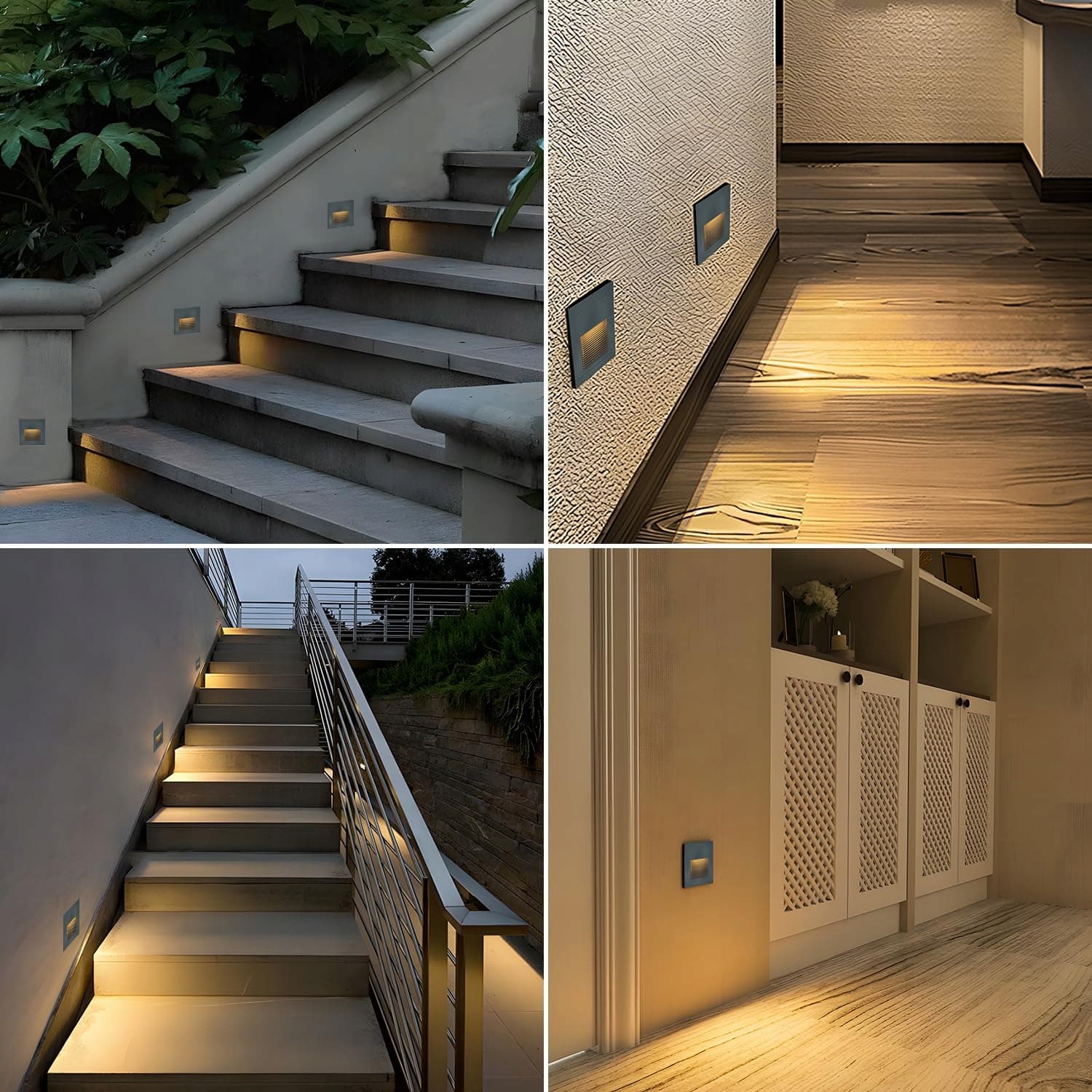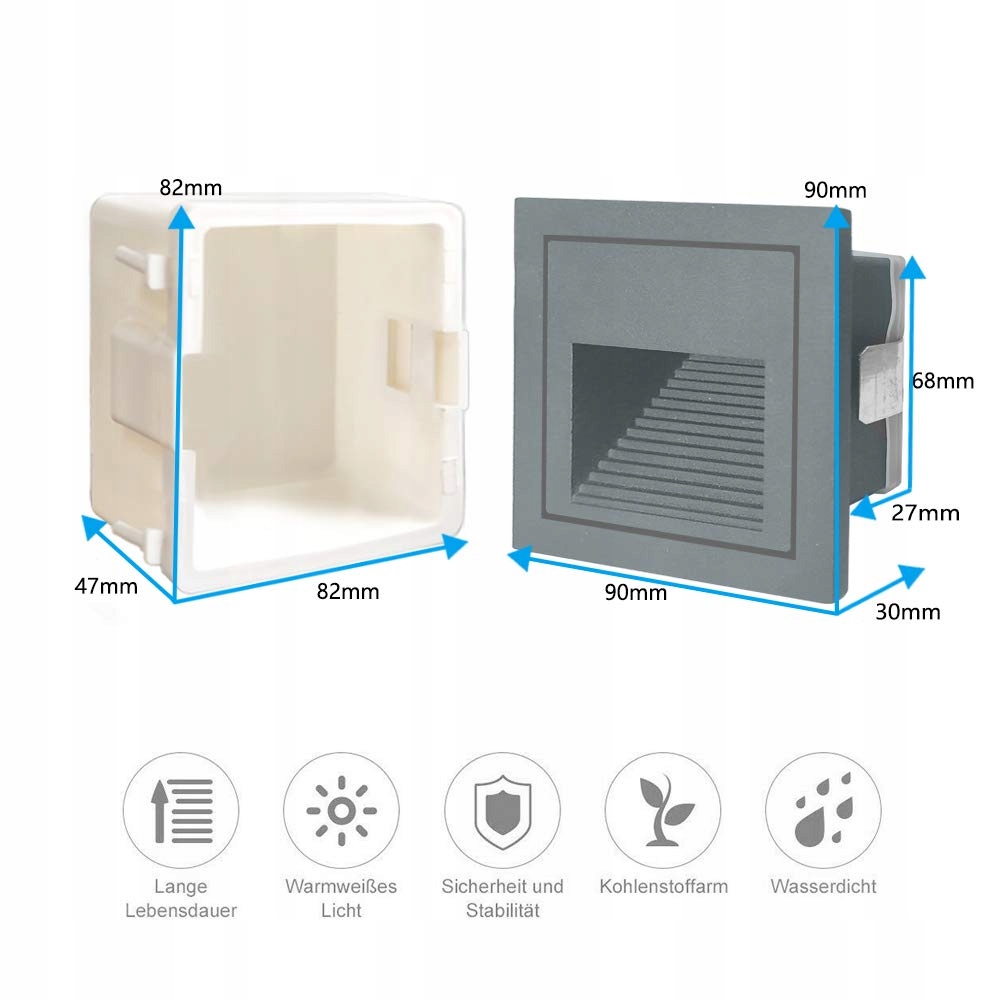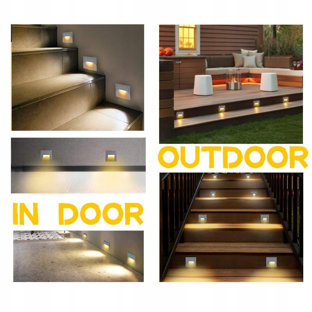 ✨【Zawartość】8 x szare lampy schodowe LED 3000K, 8 x puszki podtynkowe
