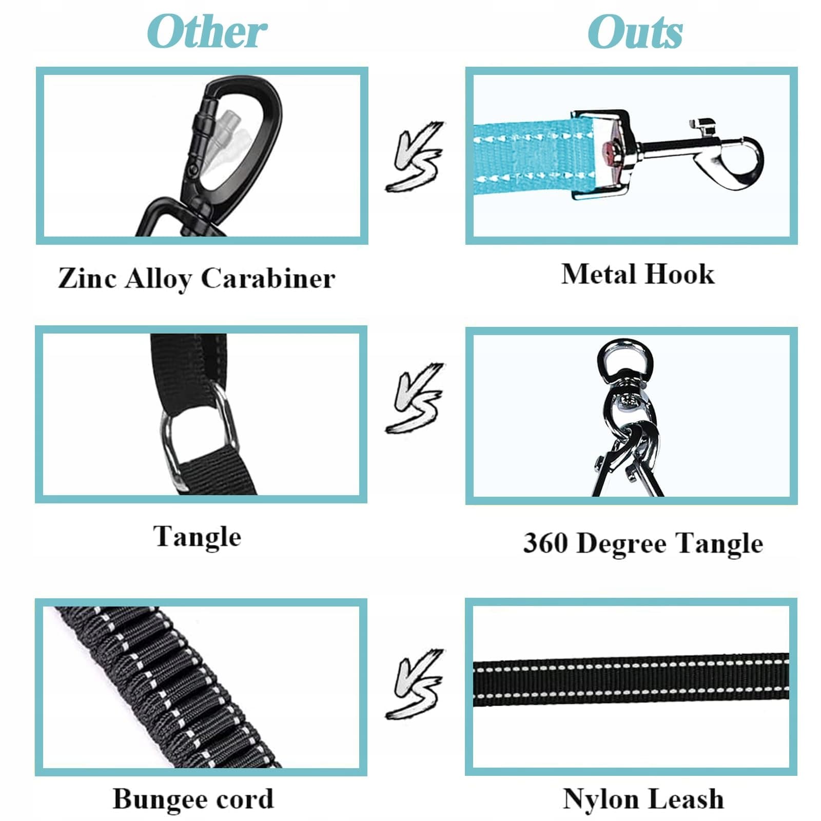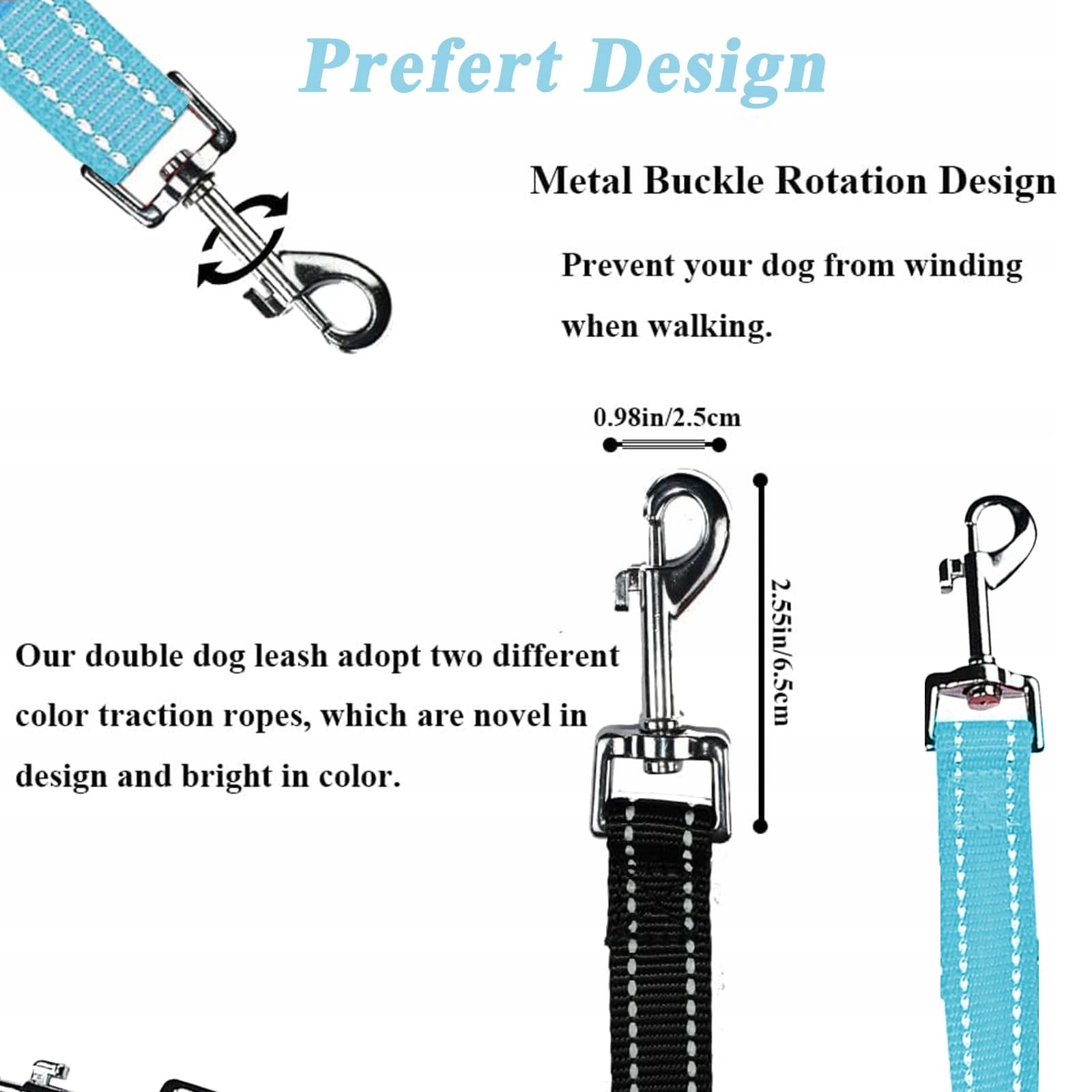360-Stopniowy Design Bez Splątania: Nasza podwójna smycz dla psów ma obrotowy design klamry o 360 stopni, który dostosowuje się do kroków twojego psa, zapewniając obu psom maksymalną swobodę bez uszkadzania smyczy. Jest również bardzo odpowiednia do zabierania psa na spacery, bieganie, camping, trening, pływanie itp.