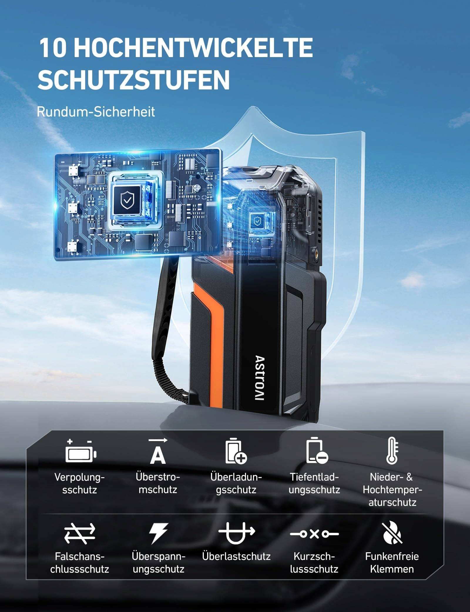 10-KROTNY SYSTEM OCHRONY: Z 10 funkcjami bezpieczeństwa dla Twojego spokoju (m.in. ochrona przed odwrotną polaryzacją, zwarciem, przeciążeniem, przegrzaniem oraz technologia beziskrowa).