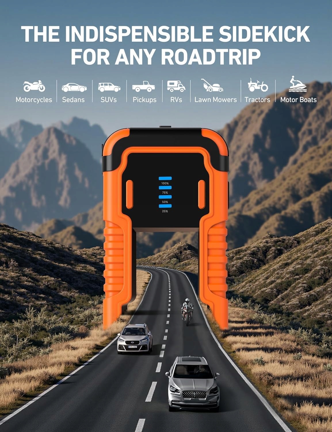 【MOCNE ROZRUCH】Powerbank do rozruchu AstroAI P12 z jego potężnym maksymalnym prądem 6000 A skutecznie uruchamia wszystkie silniki benzynowe i 12L Diesla, jest więc kompatybilny z samochodami, SUVami, kosiarkami, traktorami, motorówkami, motocyklami i więcej.