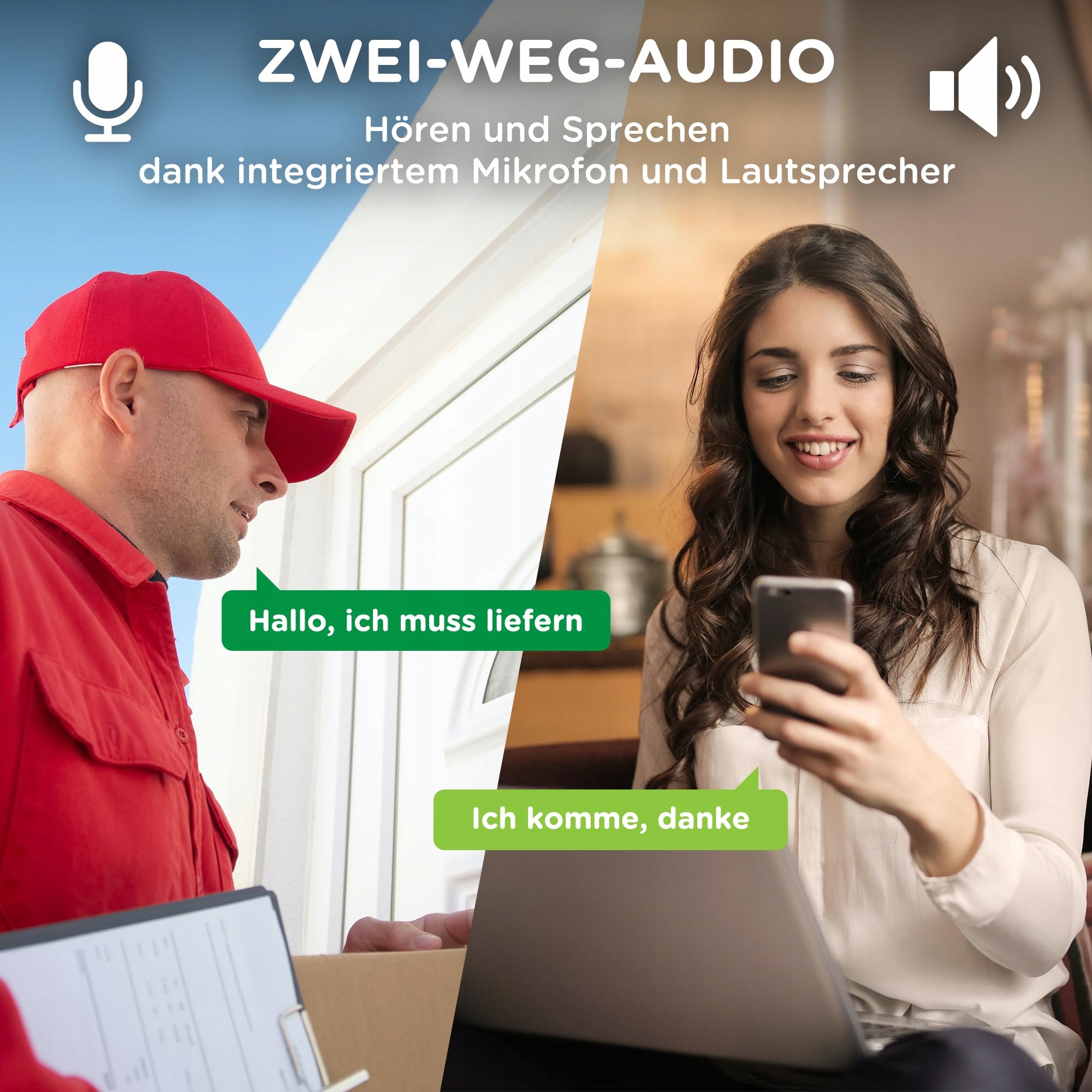 [4] - Dwukierunkowe audio (mikrofon i głośnik) w czasie rzeczywistym // Gniazdo MicroSD (max. 128 GB) do ciągłych lub wyzwalanych zdarzeniami lokalnych nagrań.