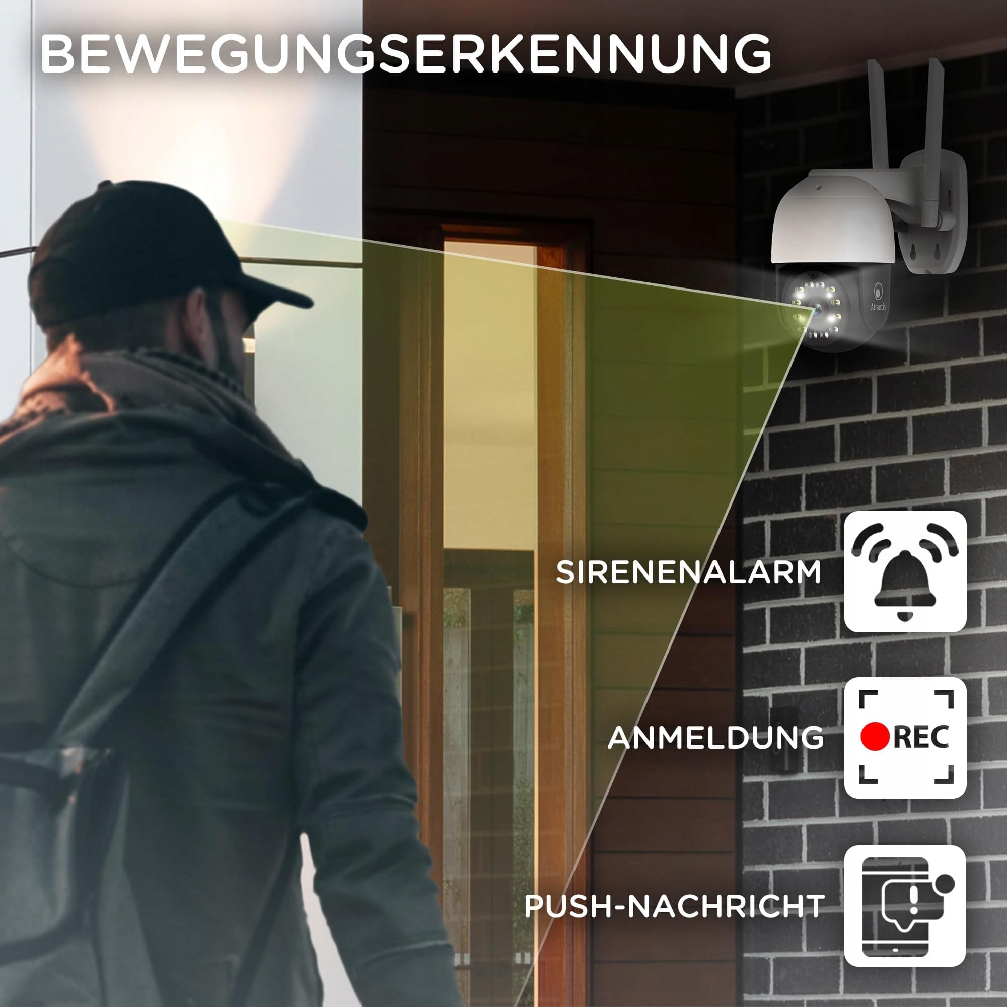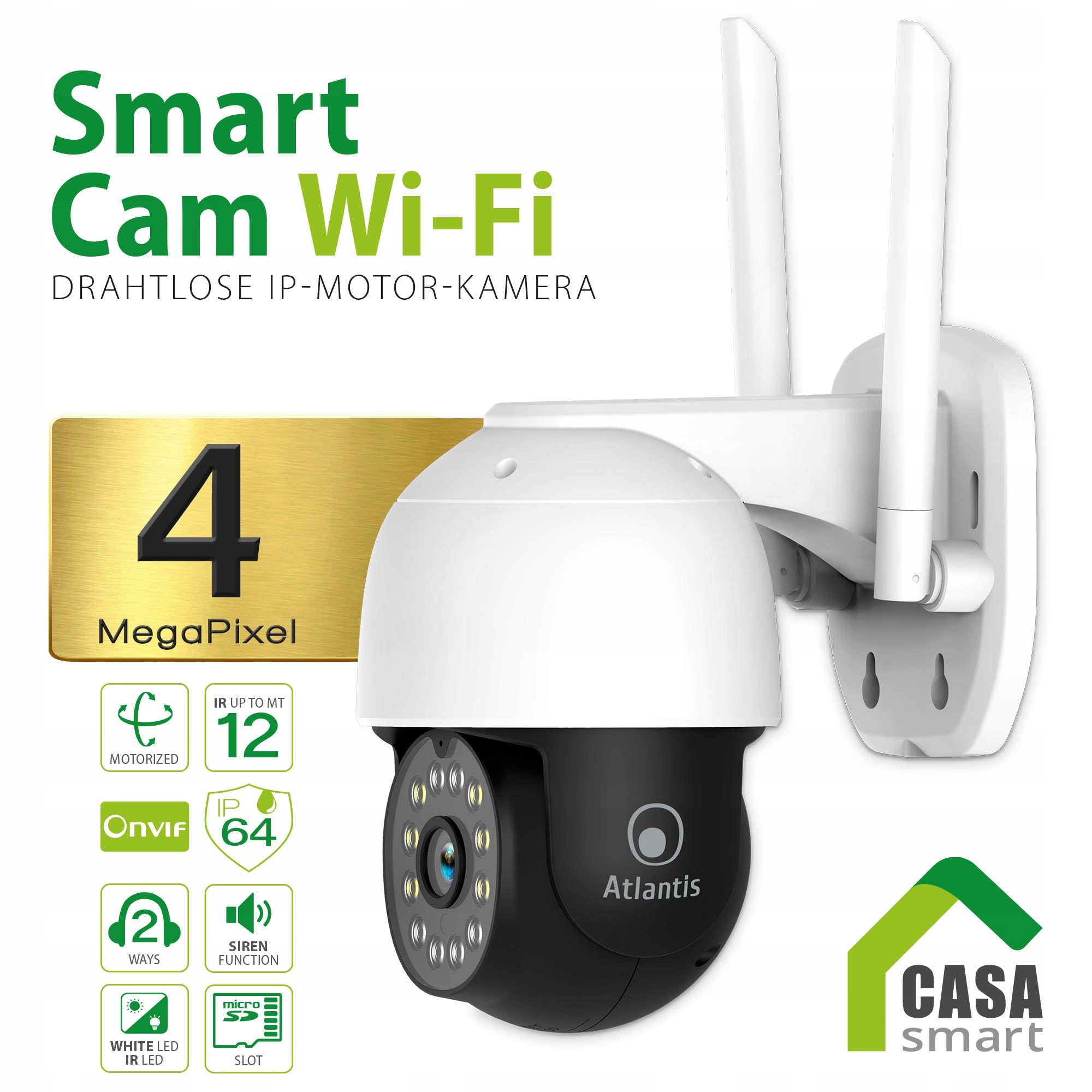 ATLANTIS Kamera Zewnętrzna Wi-Fi 4 Mpix Full HD IP64 Mikrofon Aplikacja | Premium Supply