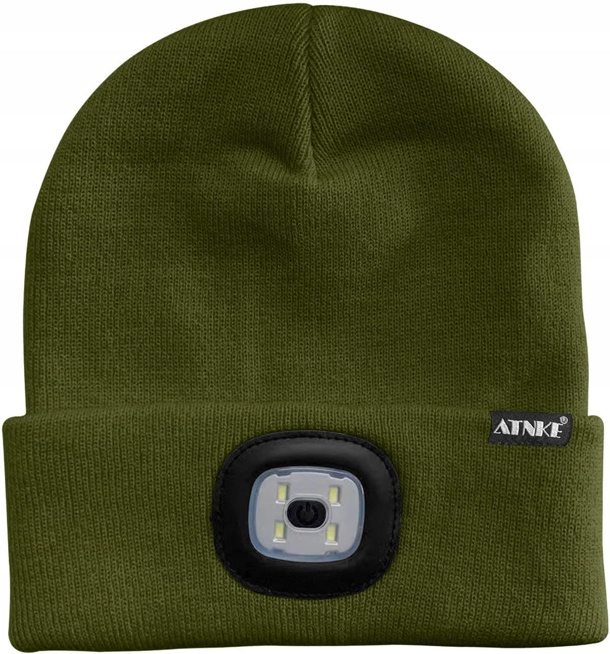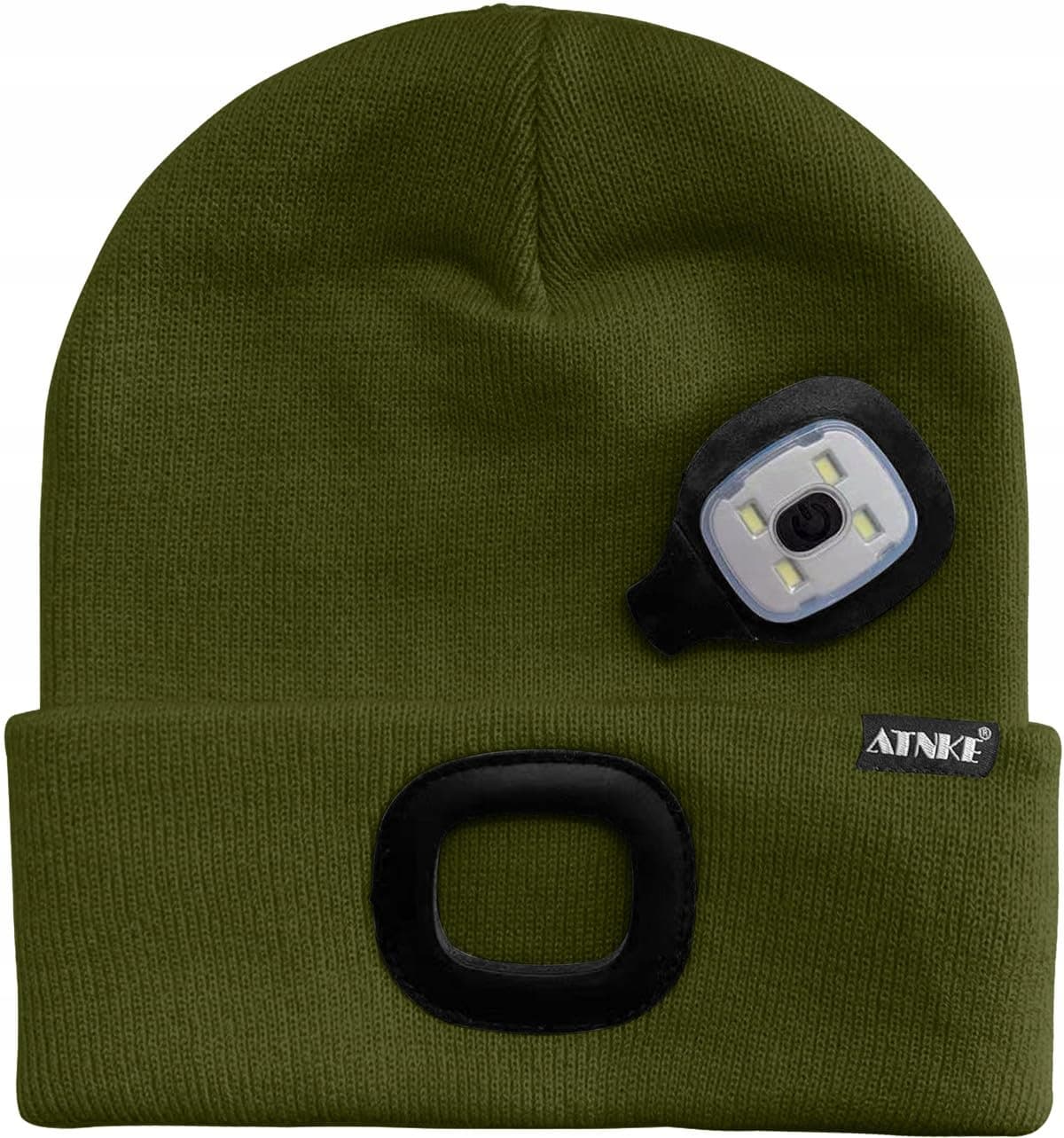 ATNKE Czapka Zimowa LED USB Z Latarką Dla Mężczyzn i Kobiet ArmyGreen