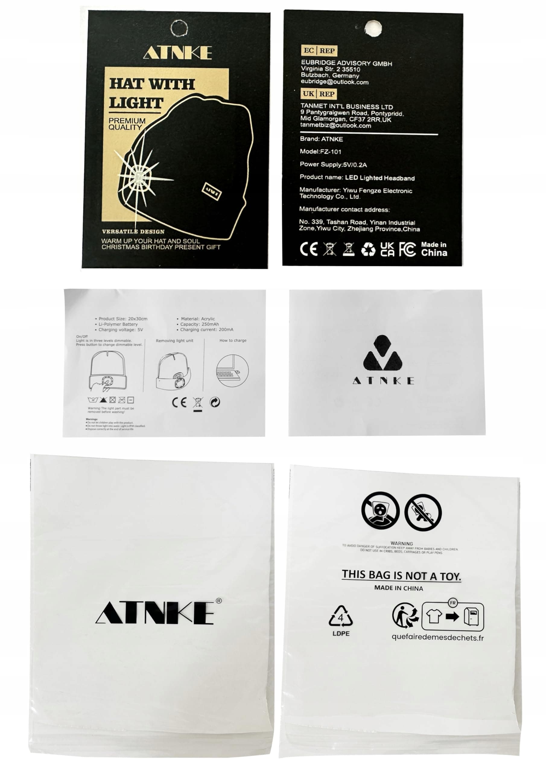 ATNKE Opaska LED Na Głowę USB Zimowa Czołówka Z Lampą 4 LED Unisex | Premium Supply