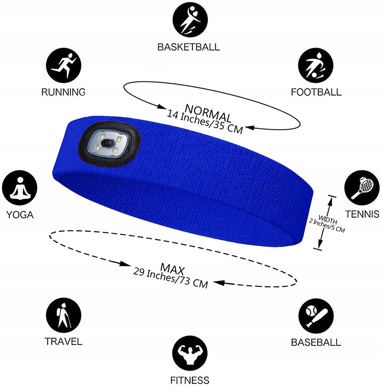 WYGODNE ŁADOWANIE I MOŻLIWOŚĆ PRANIA: Po prostu pociągnij krawędź opaski na pot i wsunąć światło do środka, aby je oddzielić i umyć opaskę lub naładować światło. 4 lampy LED mają wysoką klasę wodoodporności IP44. Podczas prania opaski zalecamy pranie ręczne. Pranie w pralce może mieć wpływ na samą opaskę.