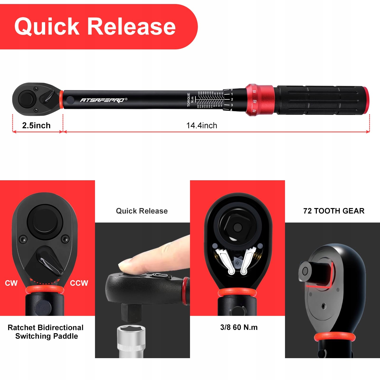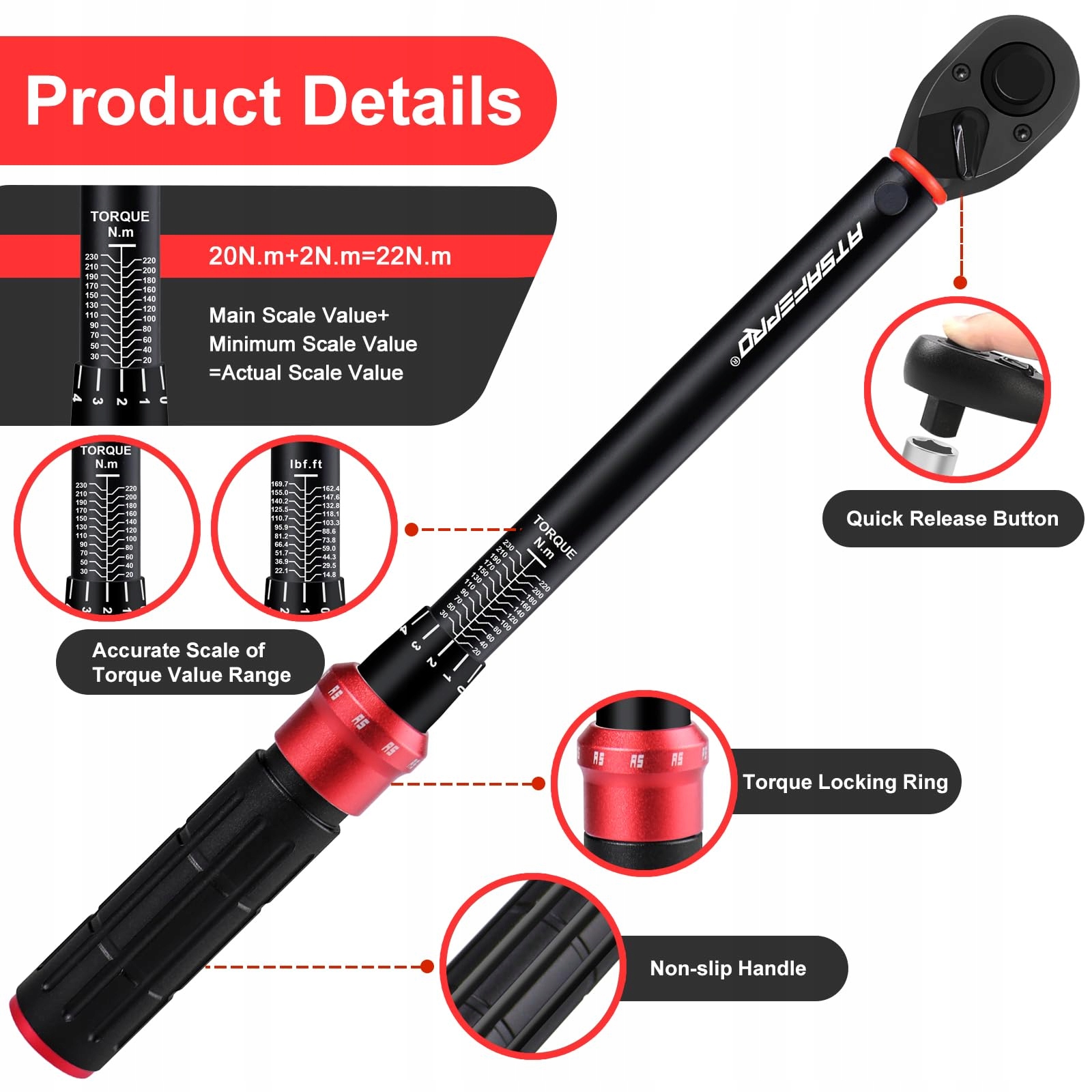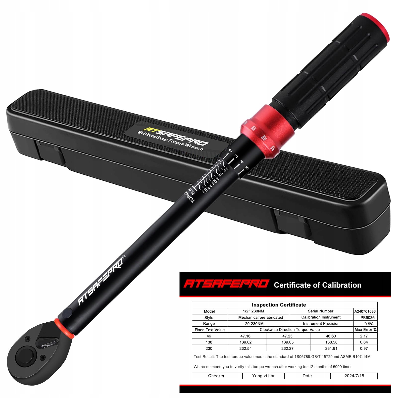 ATSAFEPRO Klucz Dynamometryczny 1/2 Cala 20-230 Nm Do Samochodów Wersja 2