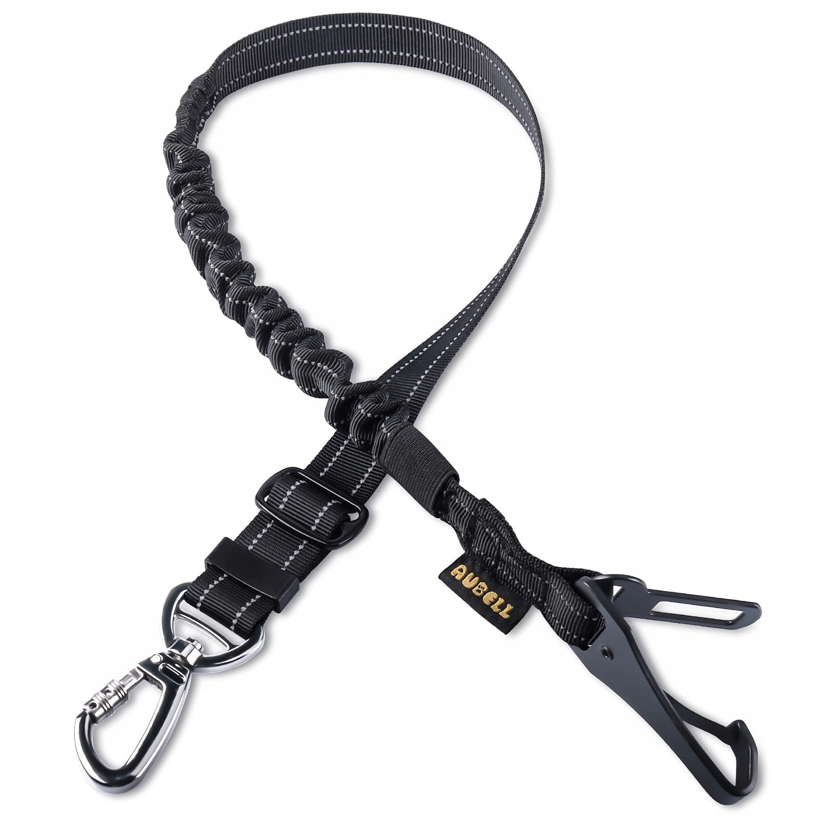 AUBELL Regulowany Pas Bezpieczeństwa Dla Psa Do Samochodu Bungee Z Hakiem I Karabińczykiem Czarny