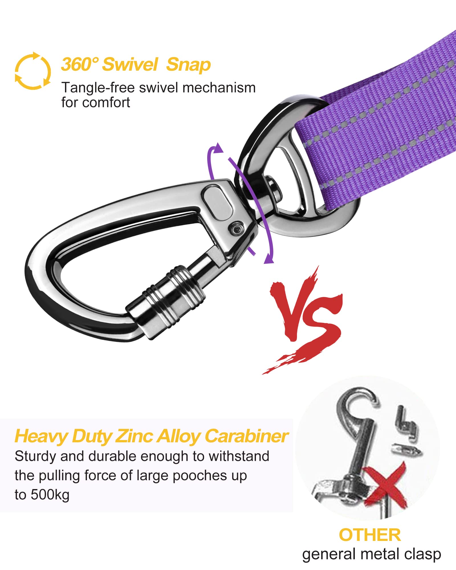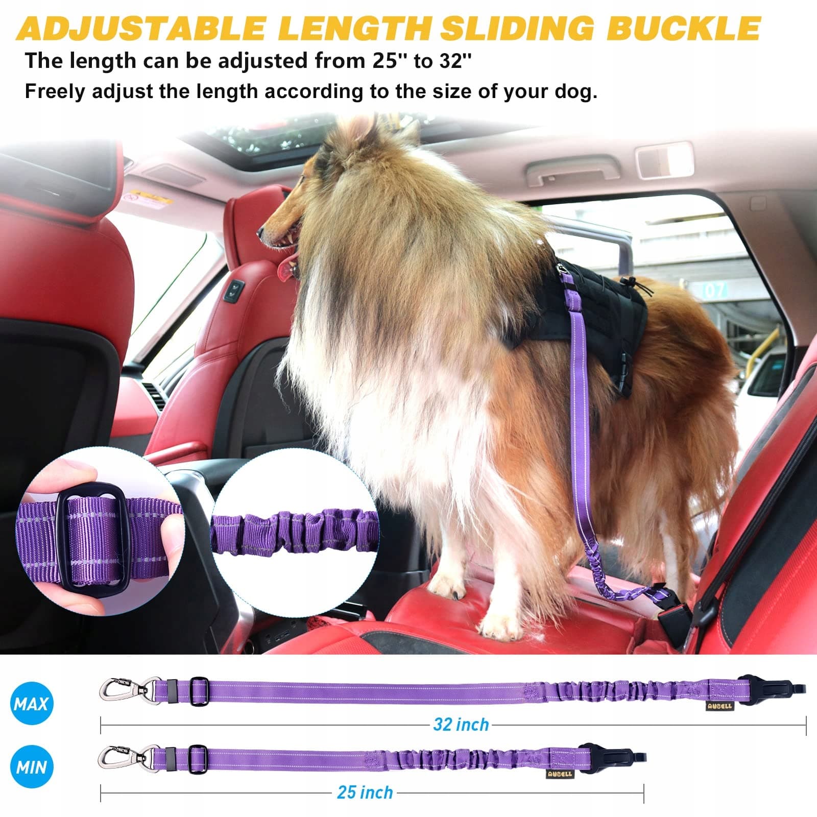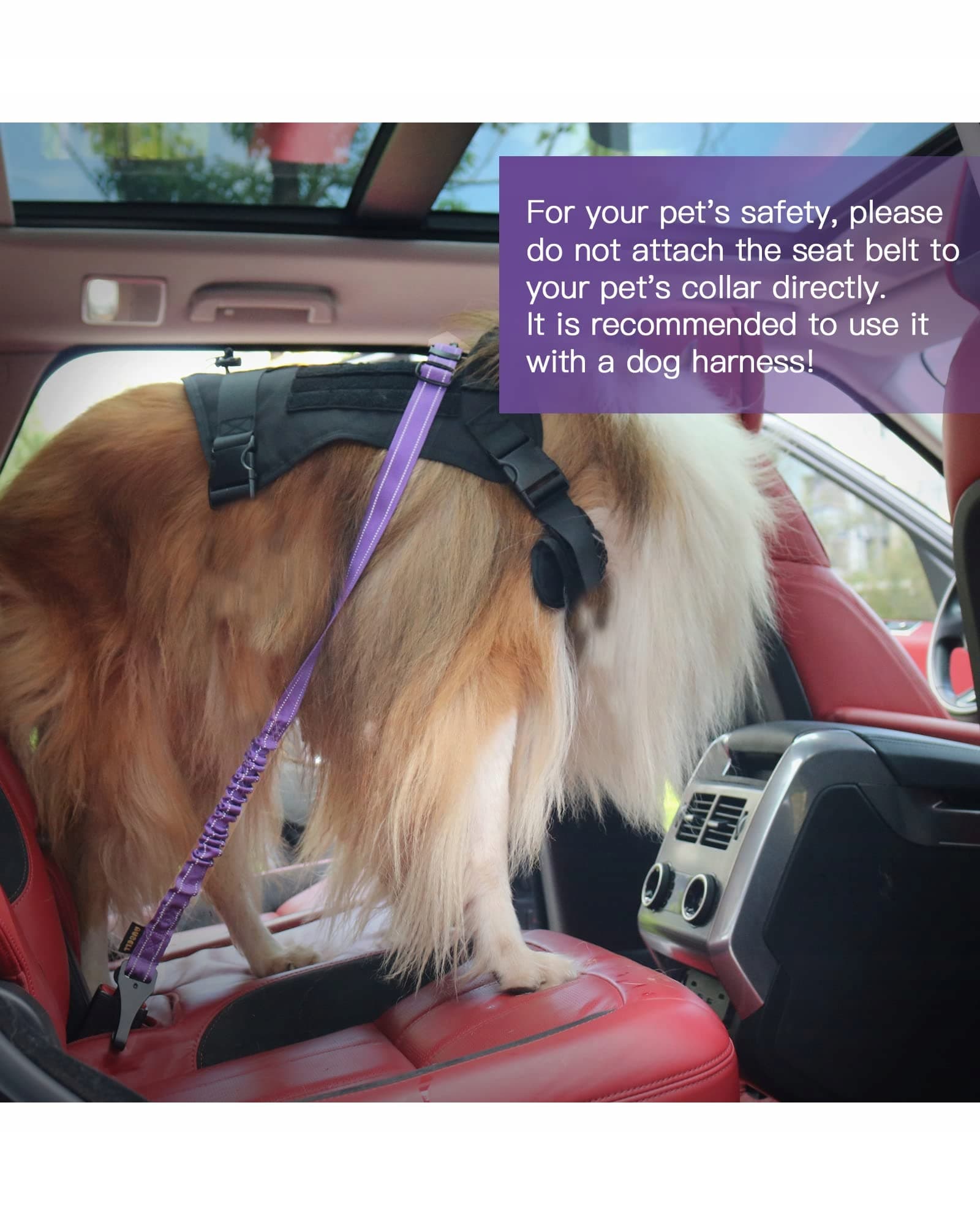 AUBELL Regulowany Pas Bezpieczeństwa Dla Psa Do Samochodu Bungee Z Hakiem I Karabinkiem Lila