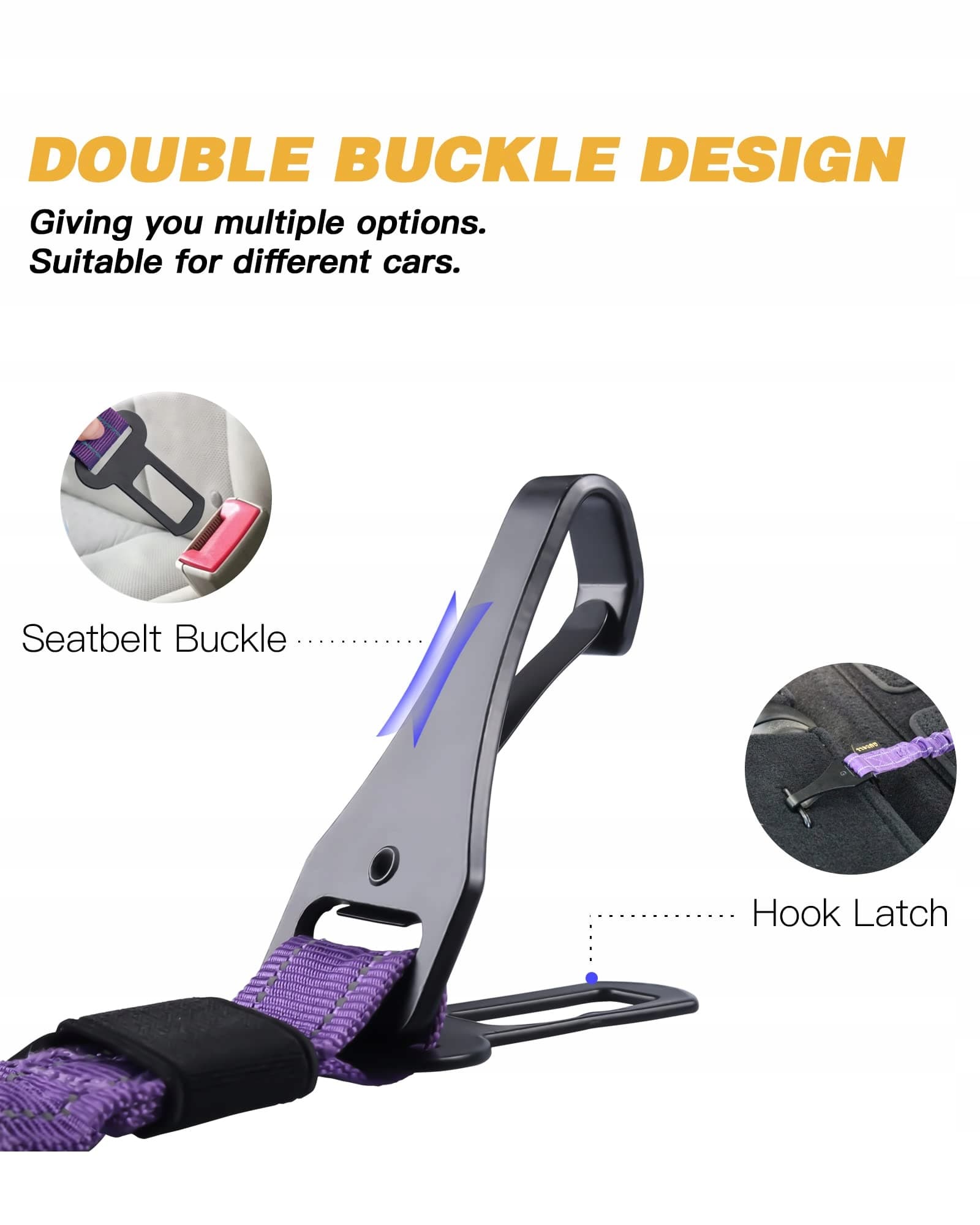 3-w-1 pas bezpieczeństwa dla psa: Nasz pas bezpieczeństwa dla psa jest wyposażony w 2 różne rodzaje klamer samochodowych. Oprócz standardowej klamry pasów bezpieczeństwa, posiada dodatkowy zamek hakowy, który można przymocować do fotelika dziecięcego i bagażnika. Możesz nawet połączyć dwa pasy w jeden, jeśli zapomnisz zwykłej smyczy
