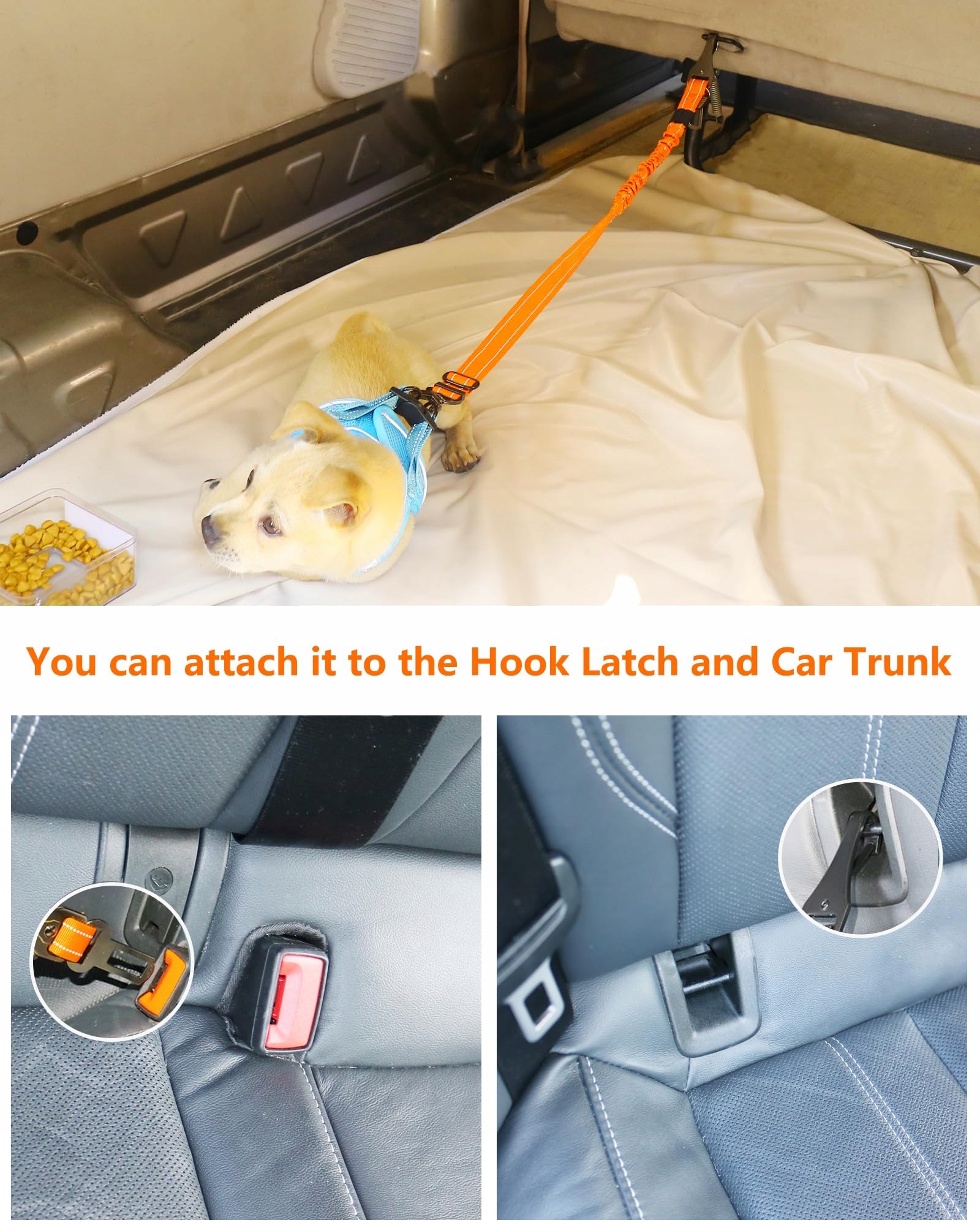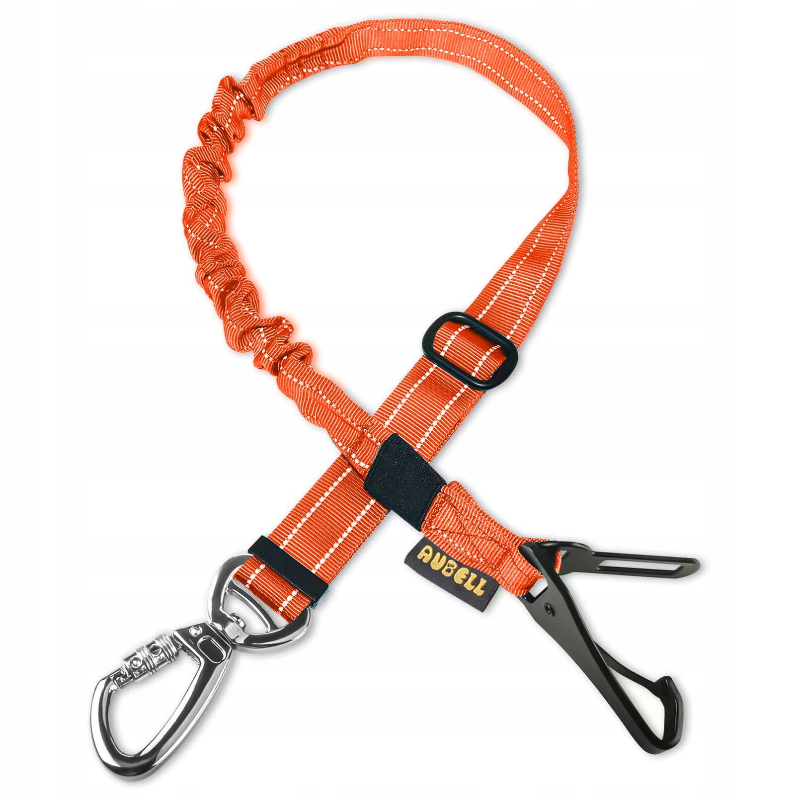 AUBELL Regulowany Pas Bezpieczeństwa Dla Psa Do Samochodu Bungee Z Haczykiem I Karabińczykiem Pomarańczowy