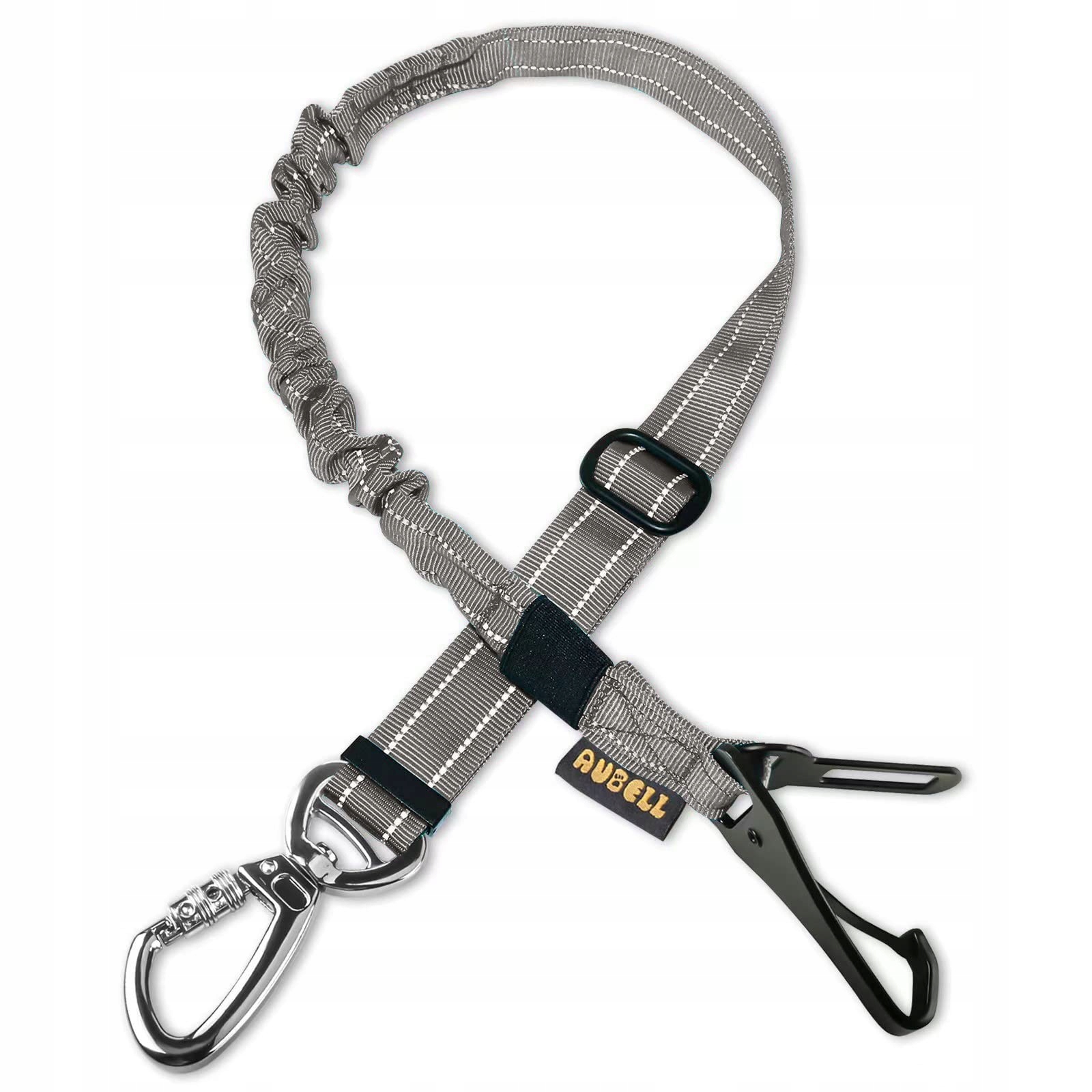 AUBELL Regulowany Pas Bezpieczeństwa Dla Psa Do Samochodu Bungee Z Hakiem I Karabińczykiem Szary