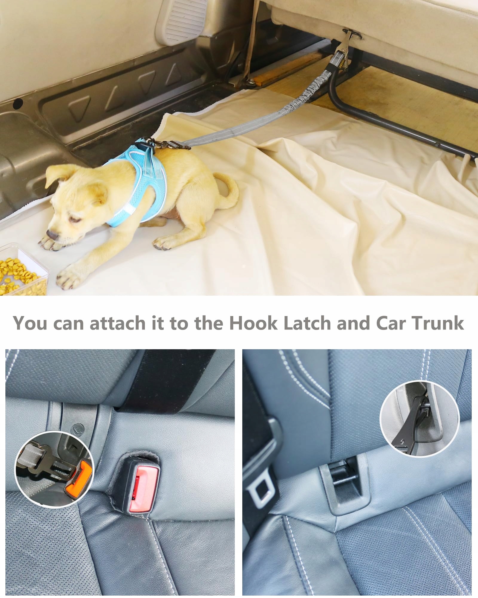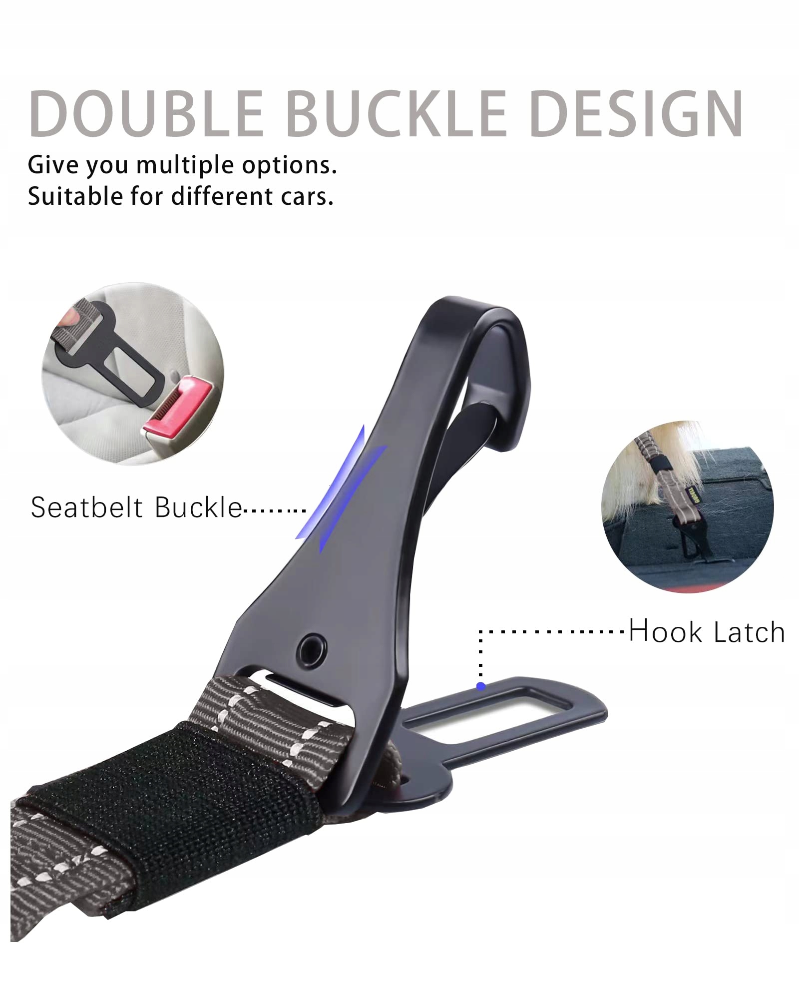 3-w-1 pas bezpieczeństwa dla psa: Nasz pas bezpieczeństwa dla psa jest wyposażony w 2 różne rodzaje klamer samochodowych. Oprócz standardowej klamry pasów bezpieczeństwa, posiada dodatkowe zapięcie na haczyk, które można przymocować do fotelika dziecięcego lub bagażnika. Możesz nawet połączyć dwa pasy w jeden, jeśli zapomnisz zwykłej smyczy