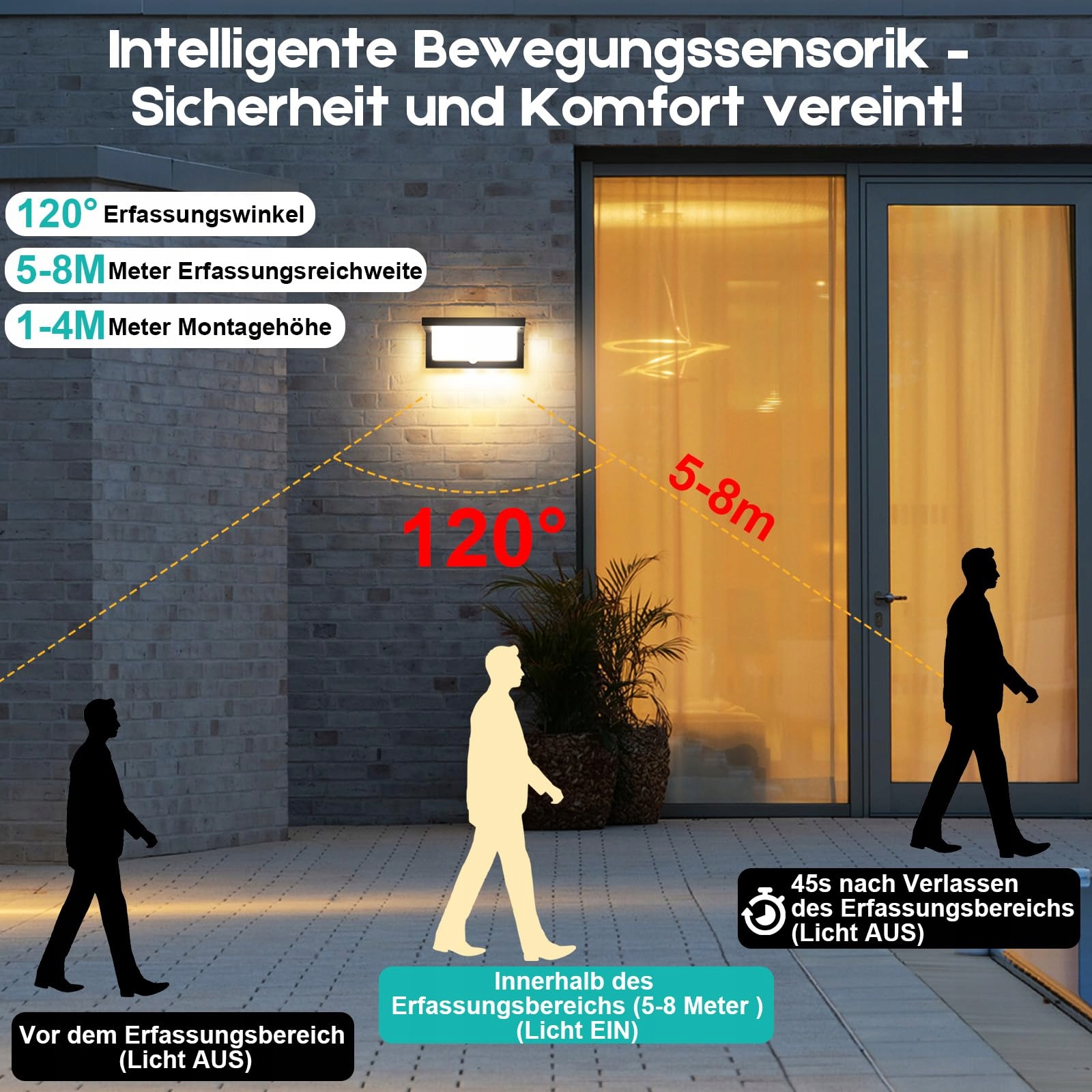 ▶ 【Inteligentna lampa zewnętrzna z czujnikiem ruchu】 - Audor 18W nowy design!!! Automatyczne włączenie w promieniu 10 stóp, automatyczne wyłączenie po 50 sekundach braku ruchu. Czujnik ruchu + czujnik podczerwieni na ciało ludzkie. Niezależnie od dnia czy nocy, gdy jest ciemno i ktoś przechodzi obok, światło automatycznie się zapala, nie trzeba ręcznie włączać światła, co jest wygodniejsze, oszczędza energię i spełnia różnorodne potrzeby.