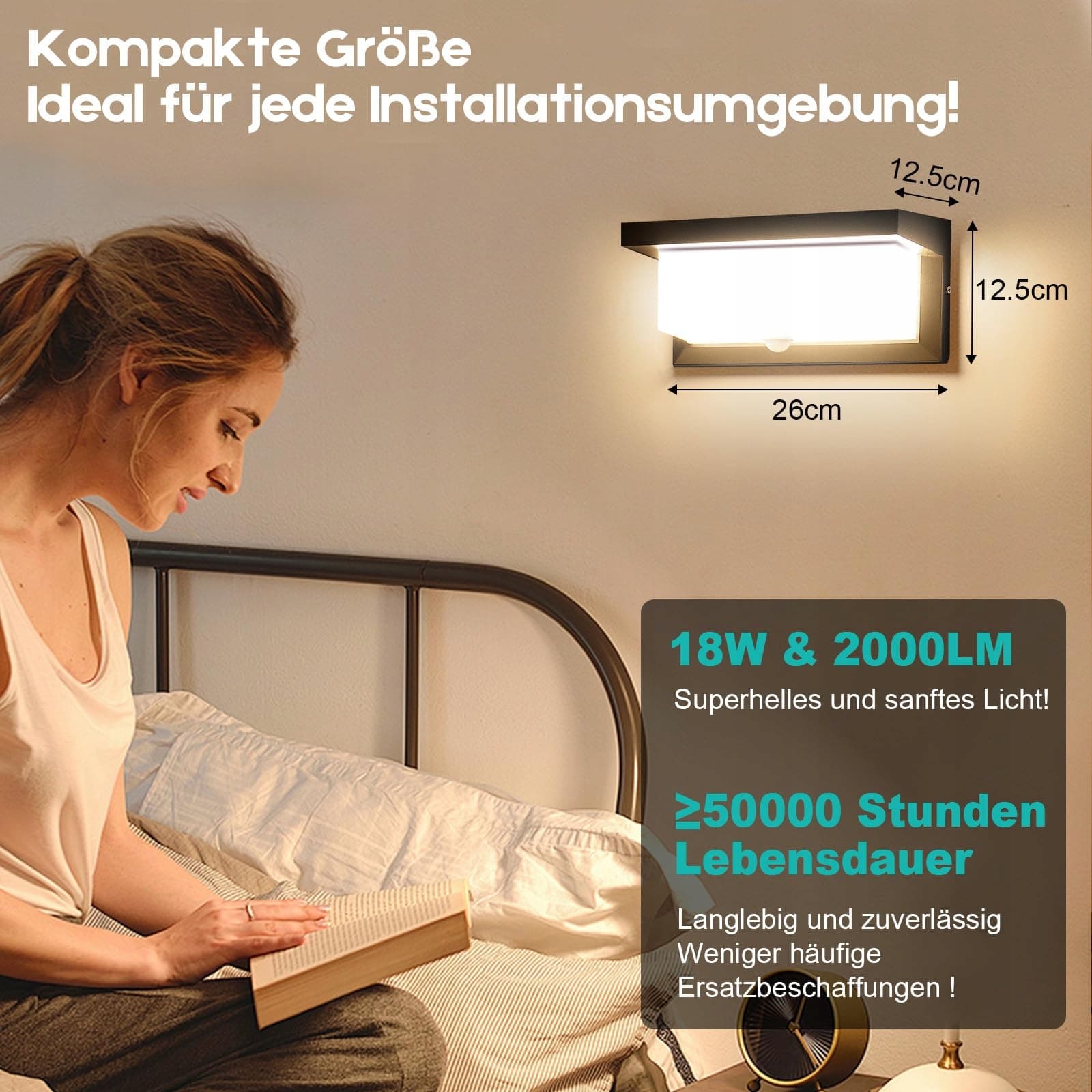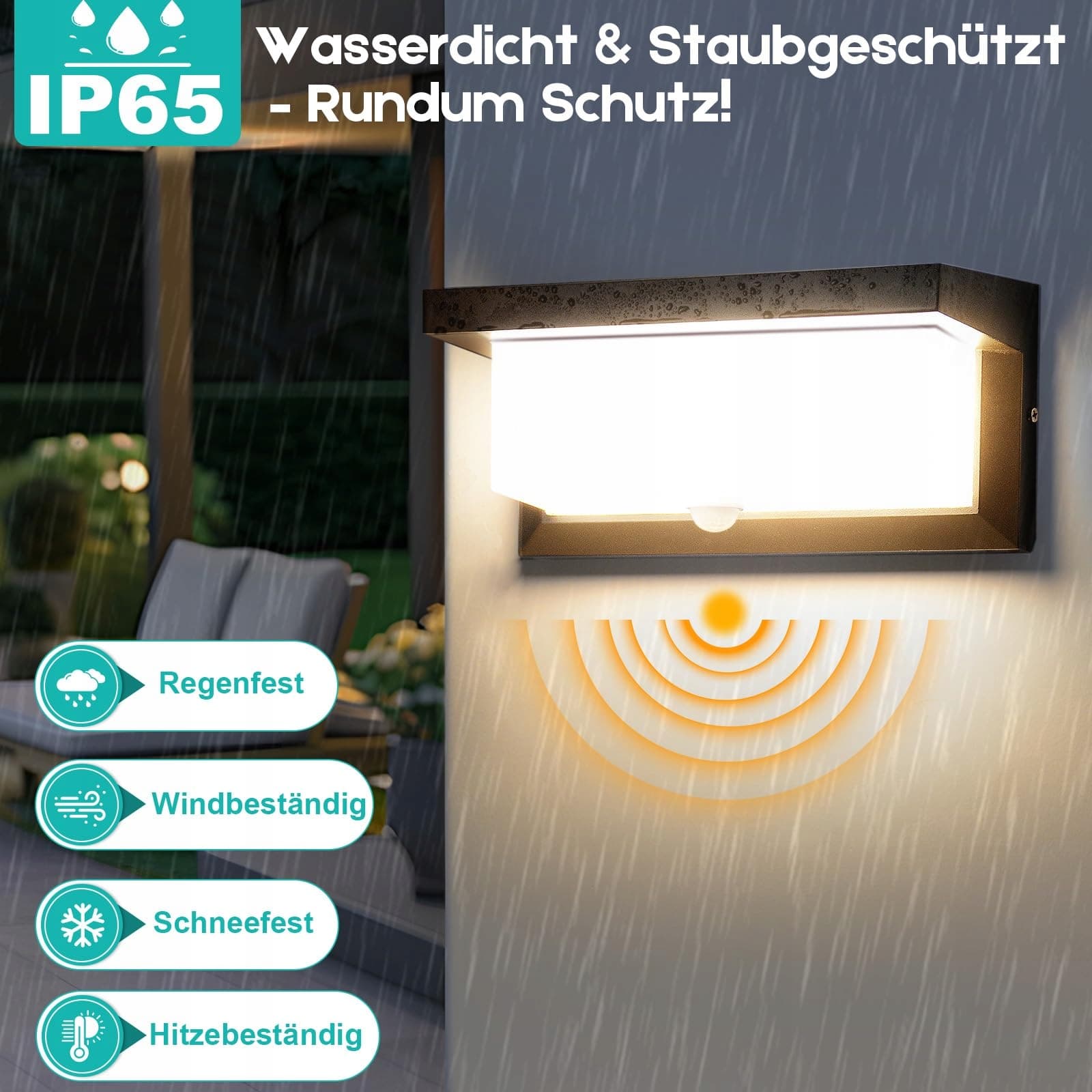 Audor Lampa zewnętrzna z czujnikiem ruchu, 18W IP65 LED kinkiet z czujnikiem ruchu do wnętrz, lampa ścienna ciepła biel, wodoodporna lampa zewnętrzna do ogrodu, korytarza, klatki schodowej