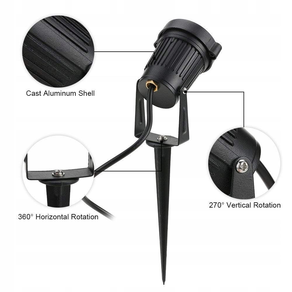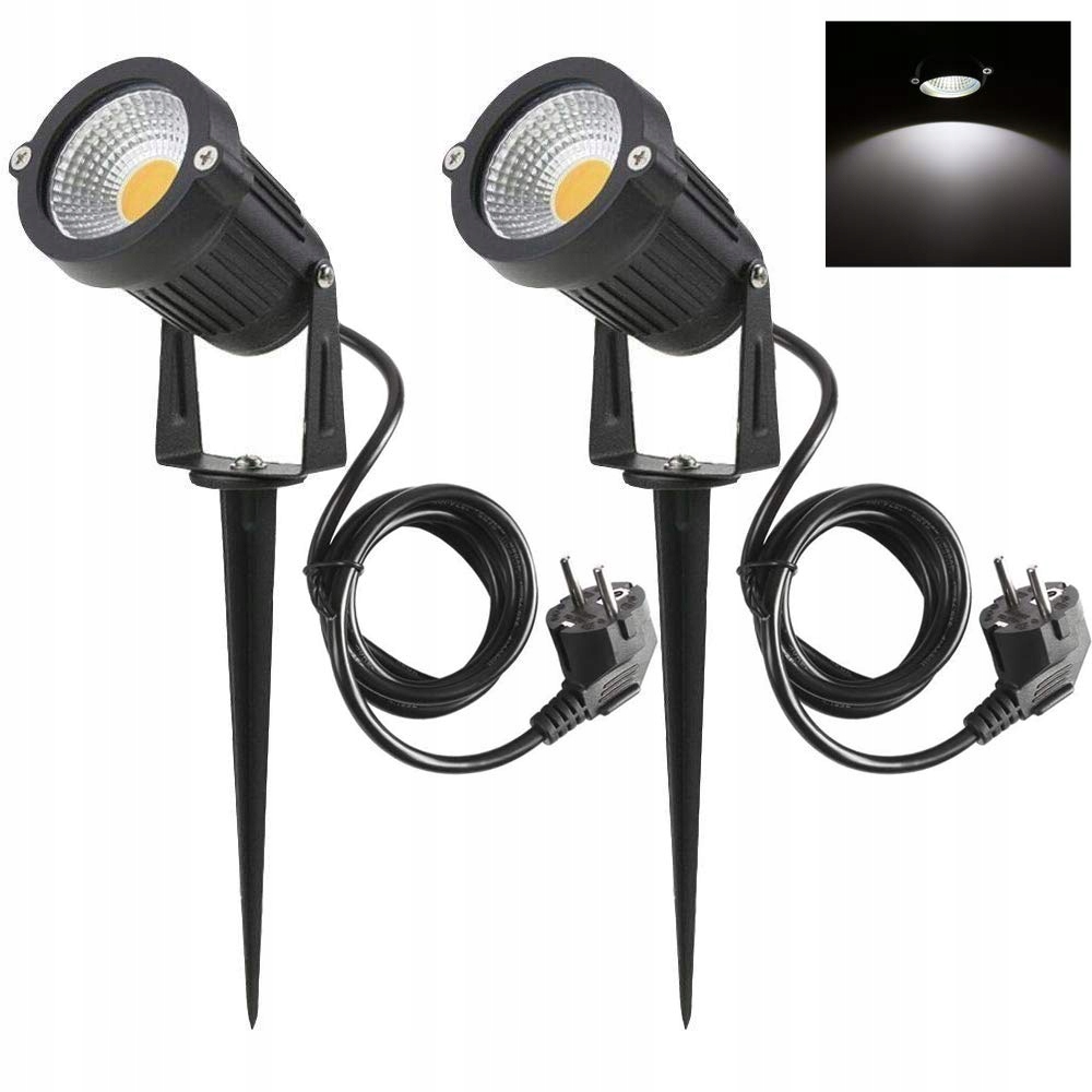 aulyun zestaw 2 szt. 5W reflektorów LED z kolcem do ziemi, kabel 1,5 m z wtyczką, oświetlenie ogrodowe LED, lampa ogrodowa reflektor do trawnika IP65 wodoodporna do użytku na zewnątrz na podwórku i trawniku (zimna biel)