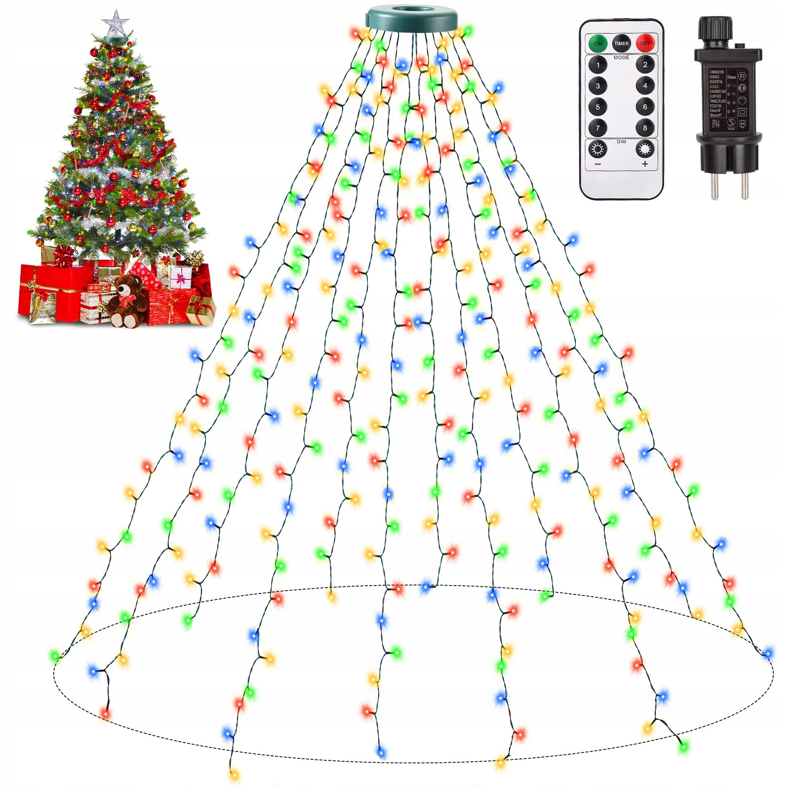 Auriostar Łańcuch świetlny na choinkę Ring 2,5M - 300 LED 12 Strun Oświetlenie choinkowe wewnątrz, łańcuch świetlny na zewnątrz 8 trybów z timerem, Oświetlenie świąteczne dla choinki 150cm, 180cm 250cm Kolorowe
