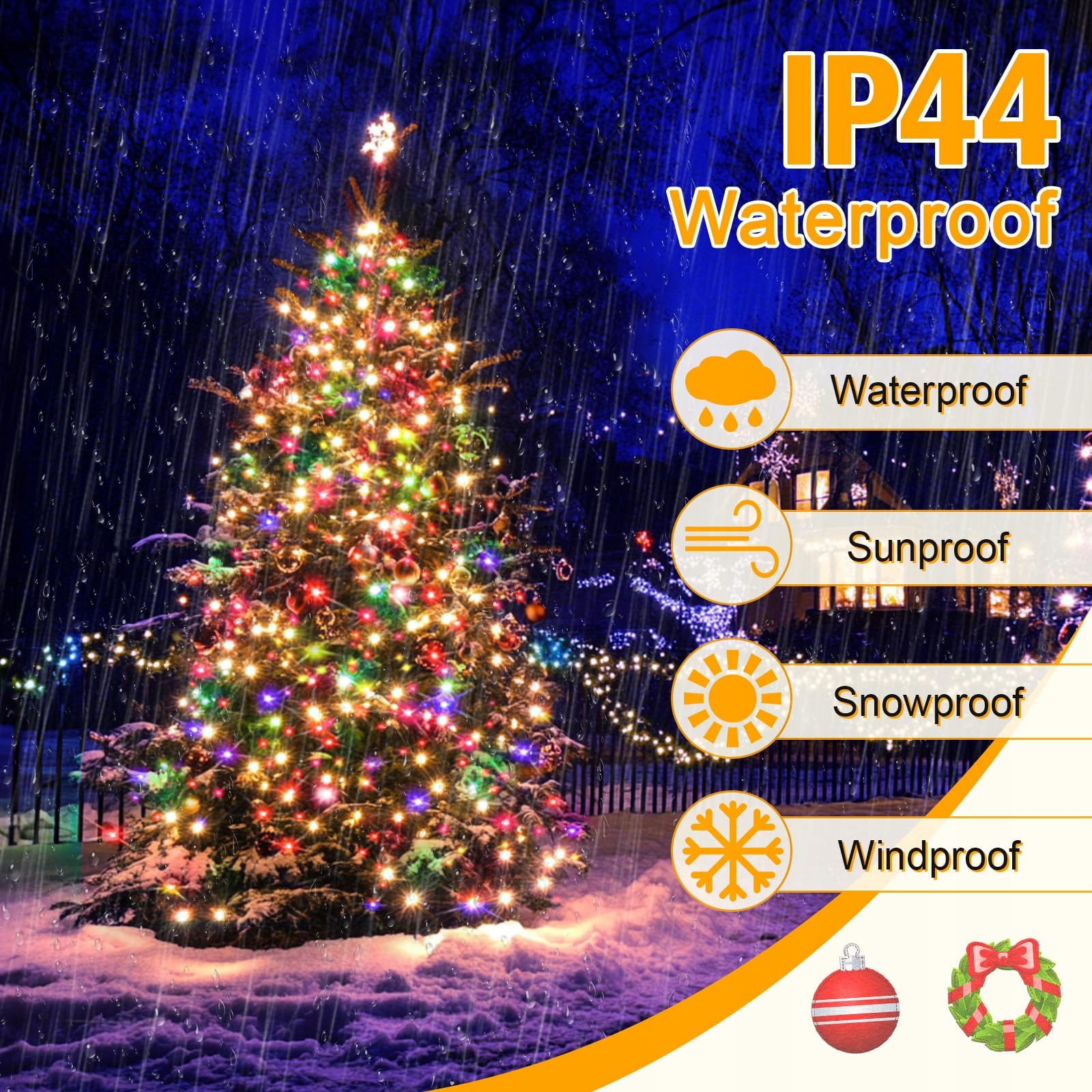 [Czas i wodoodporność IP44]: Świąteczny łańcuch świetlny można ustawić za pomocą pilota, aby automatycznie włączał się i wyłączał o ustalonej porze, nie jest wymagana ręczna kontrola. Wodoodporność oświetlenia świątecznego nie jest łatwo naruszona przez deszcz i śnieg, co czyni je idealnym oświetleniem do dekoracji świątecznych zarówno wewnątrz, jak i na zewnątrz