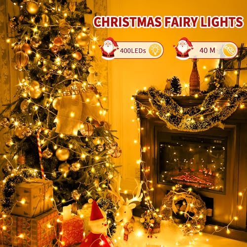 Auriostar Lichterkette Außen 40M 400LED - Lichterkette Weihnachtsbaum Outdoor Innen 8 Modi mit Fernbedienung Timer, IP44 Wasserdicht Lichterkette Strom für Party Garten Hochzeit Weihnachten Warmweiß