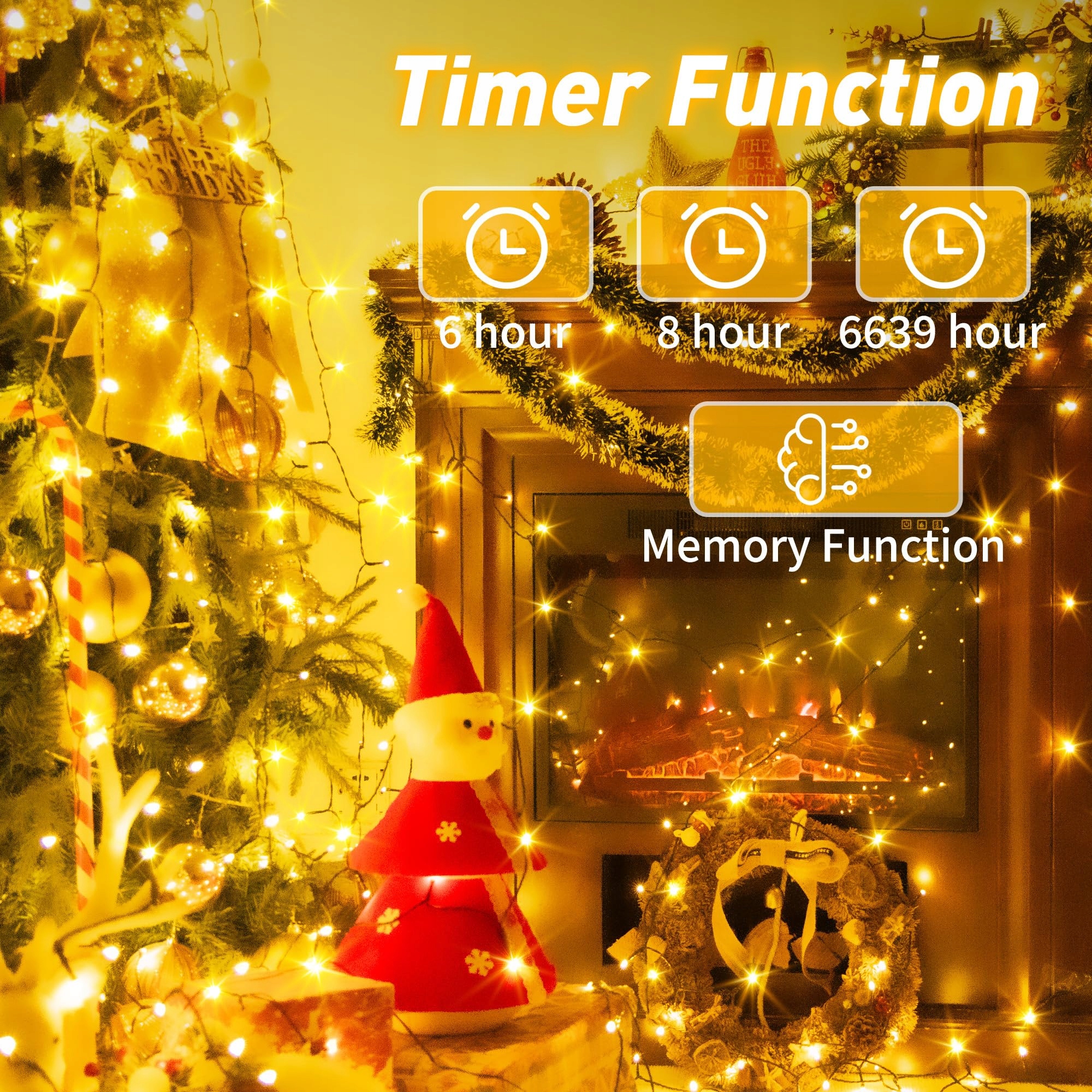 3 tryby timera i funkcje pamięci: Łańcuch świetlny na Boże Narodzenie ma 3 tryby czasowe: 6 godzin włączone/18 godzin wyłączone, 8 godzin włączone/16 godzin wyłączone, 6 godzin włączone/6 godzin wyłączone/3 godziny włączone/9 godzin wyłączone, ustaw to. Światła włączają się i wyłączają zgodnie z planem, co jest bardzo oszczędne energetycznie, przyjazne dla środowiska i oszczędza czas. Nadaje się do dekoracji domów, ogrodów, balkonów i innych dużych powierzchni dekoracyjnych