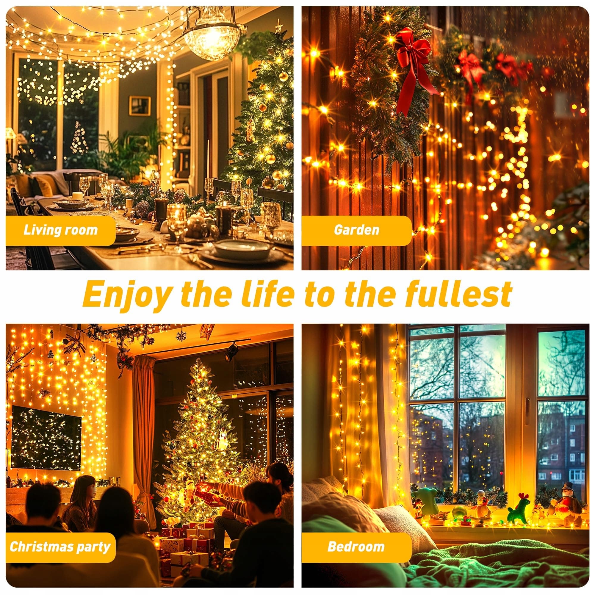 8 trybów oświetlenia: Łańcuch świetlny na Boże Narodzenie ma 8 różnych trybów oświetlenia, które można łatwo przełączać za pomocą przycisków na pilocie. Znajdź tryb świetlny, który pasuje do Twojego wydarzenia. Łańcuchy świetlne są wszechstronne i nadają się do dekoracji różnych okazji, w tym imprez wewnętrznych i zewnętrznych