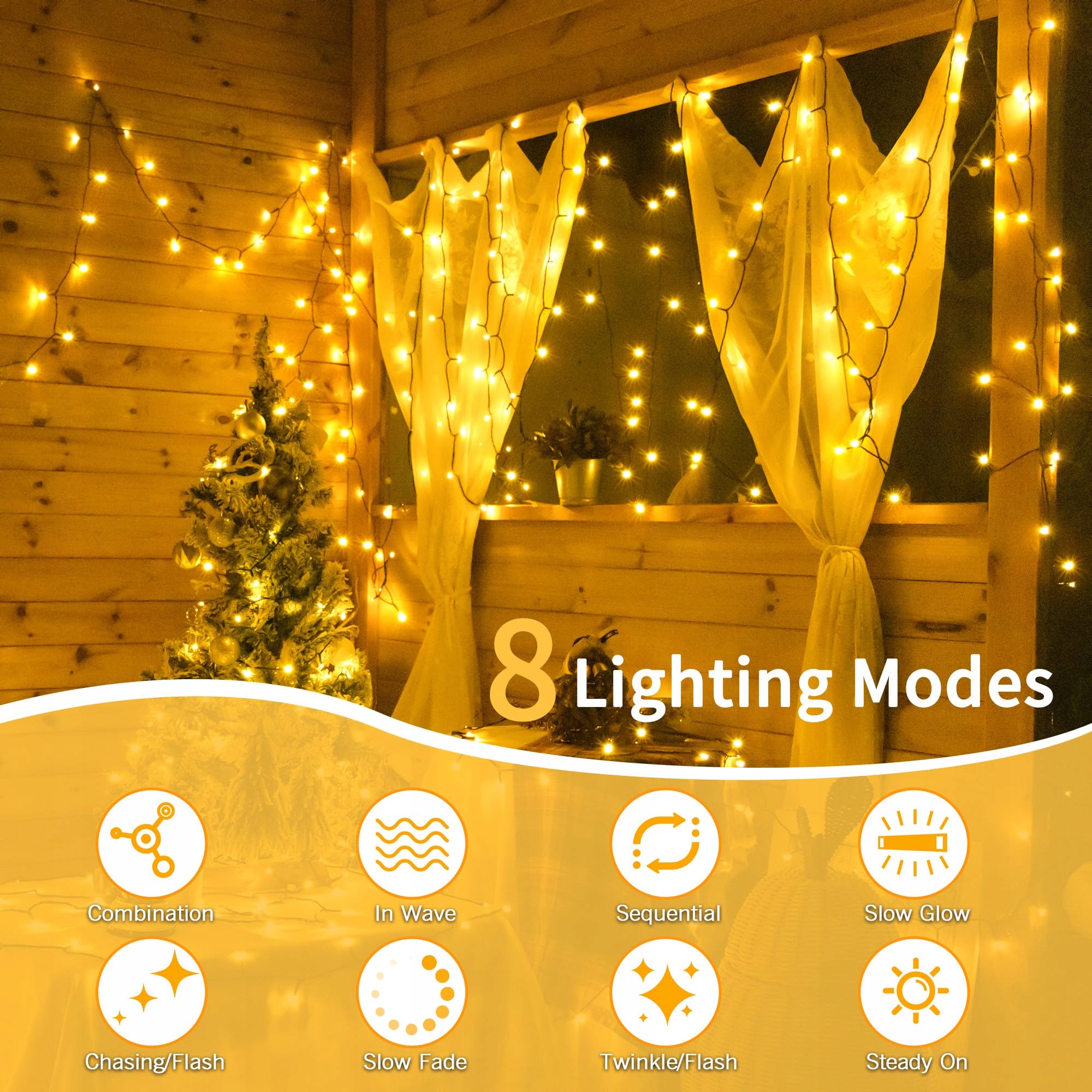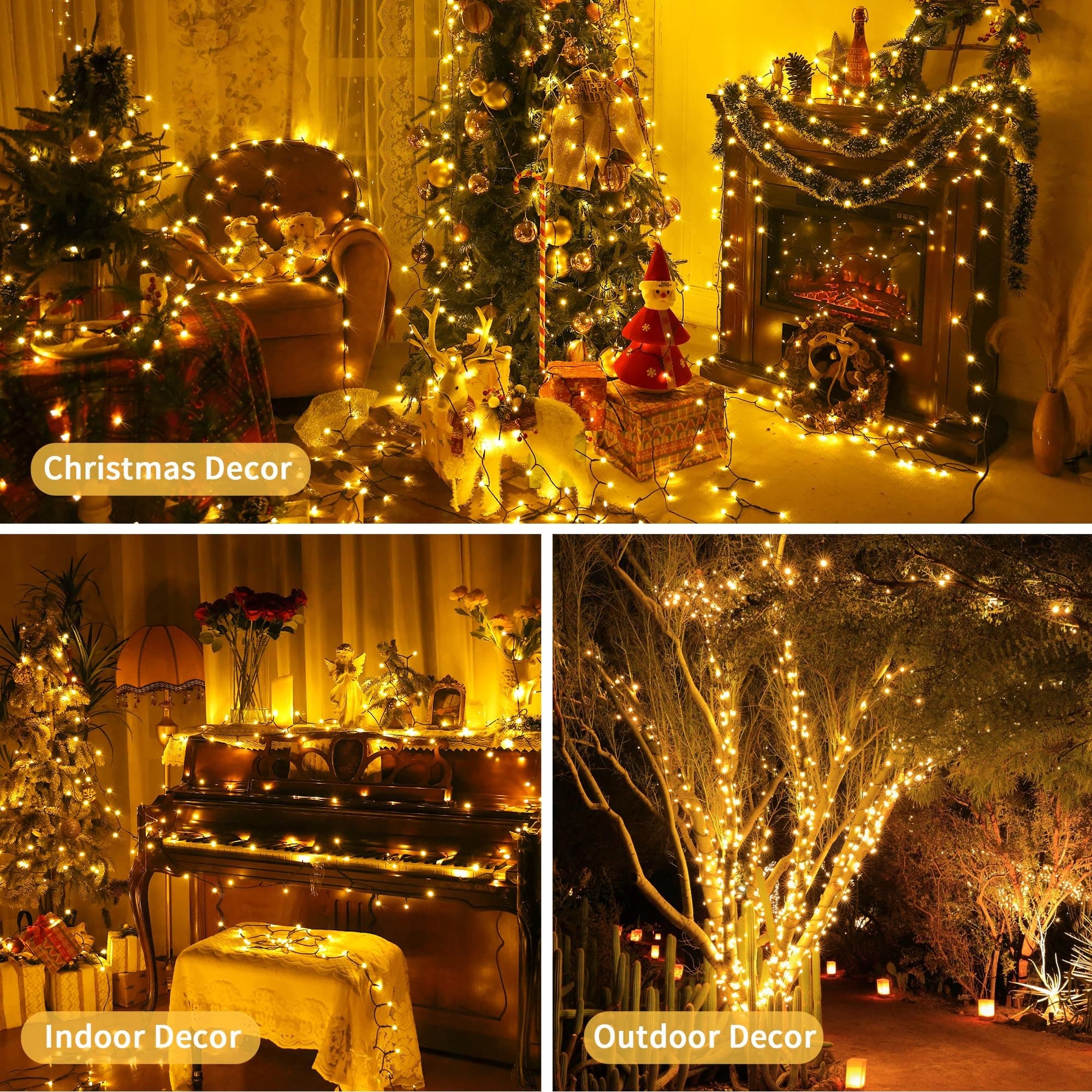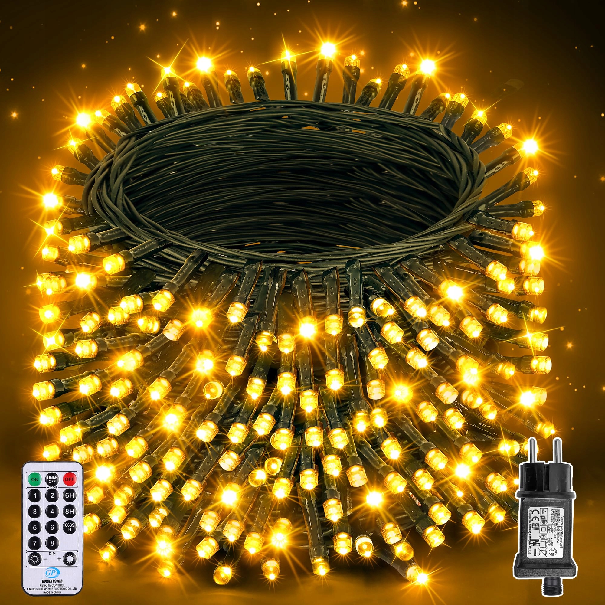 Auriostar Lichterkette Außen Weihnachtsbaum 20m - 200LED Lichterkette Outdoor Innen Strom 8 Modi mit Fernbedienung Timer, Wasserdicht IP44 Lichterkette Weihnachtsbeleuchtung für Party Garten Balkon