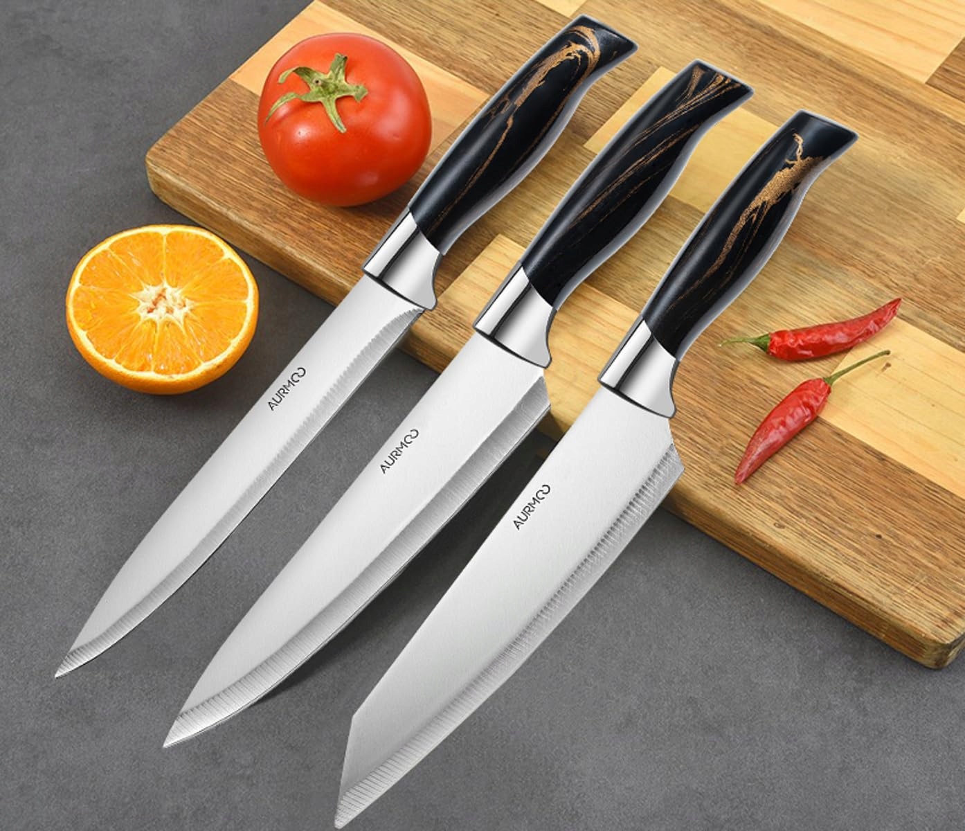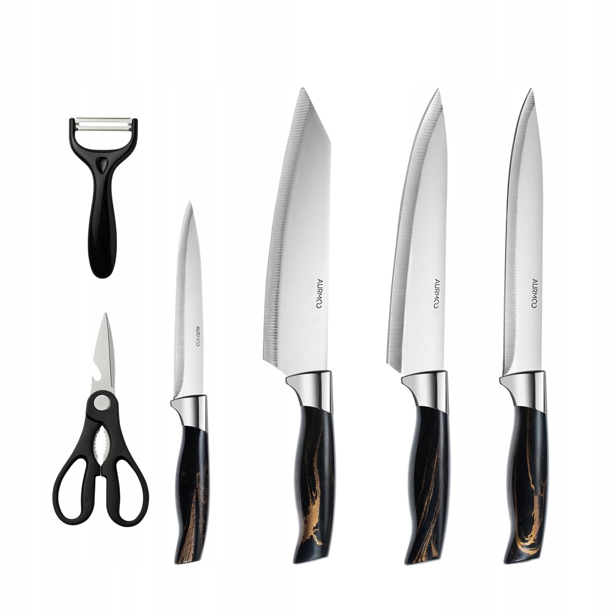 AURMOO Zestaw Noży Kuchennych 6 Części Stal Nierdzewna Ergonomiczny Uchwyt | Premium Supply