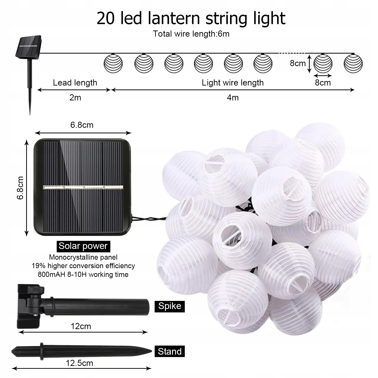 AUTING Solarna Girlanda Lampiony Zewnetrzne 6M 20 LED 8 Trybów